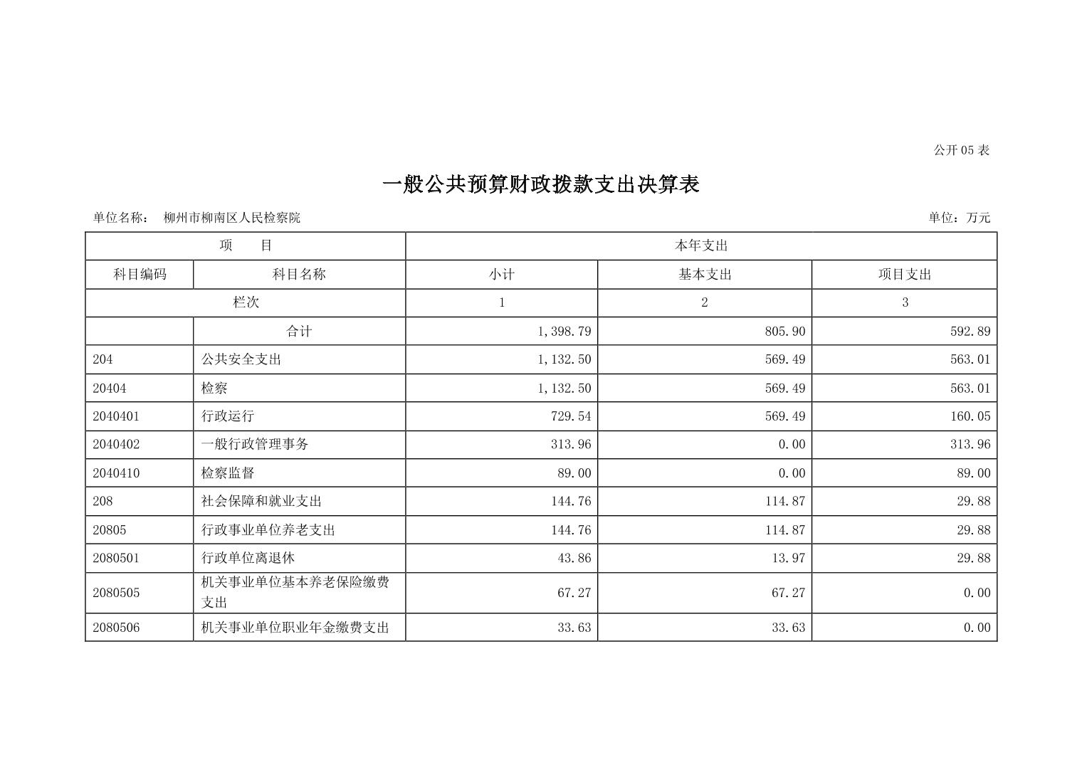 柳州市柳南区人民检察院2022年度单位决算