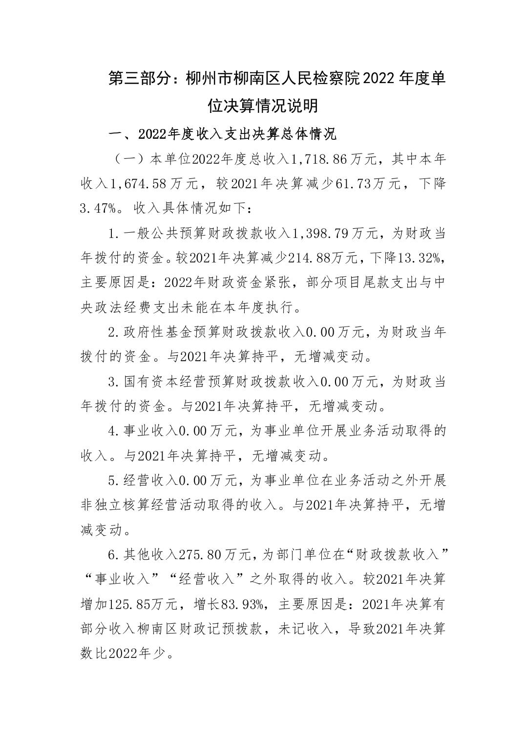 柳州市柳南区人民检察院2022年度单位决算 - 2022 - 广西永利博彩网站