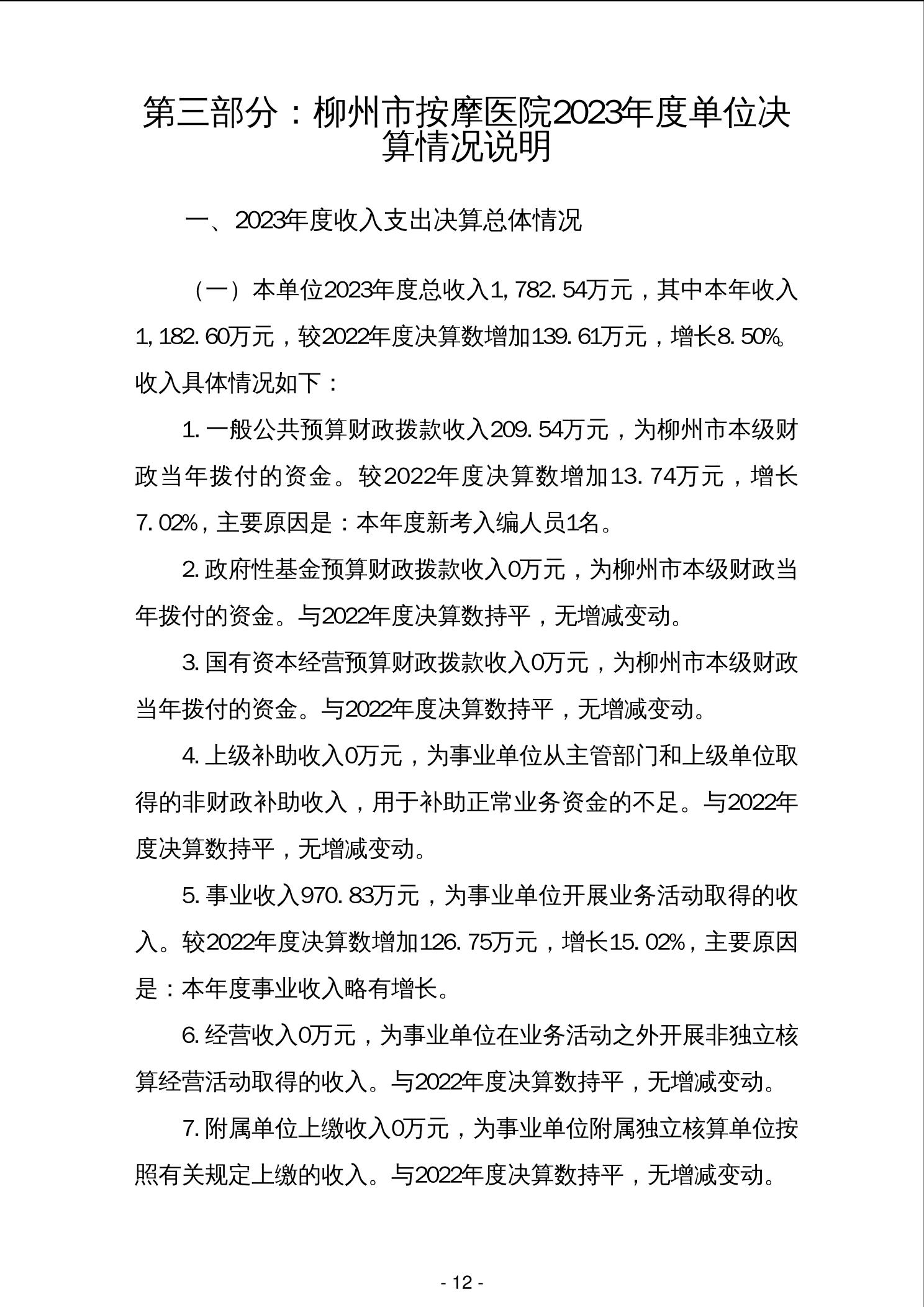 202006柳州市按摩医院2023年度单位决算