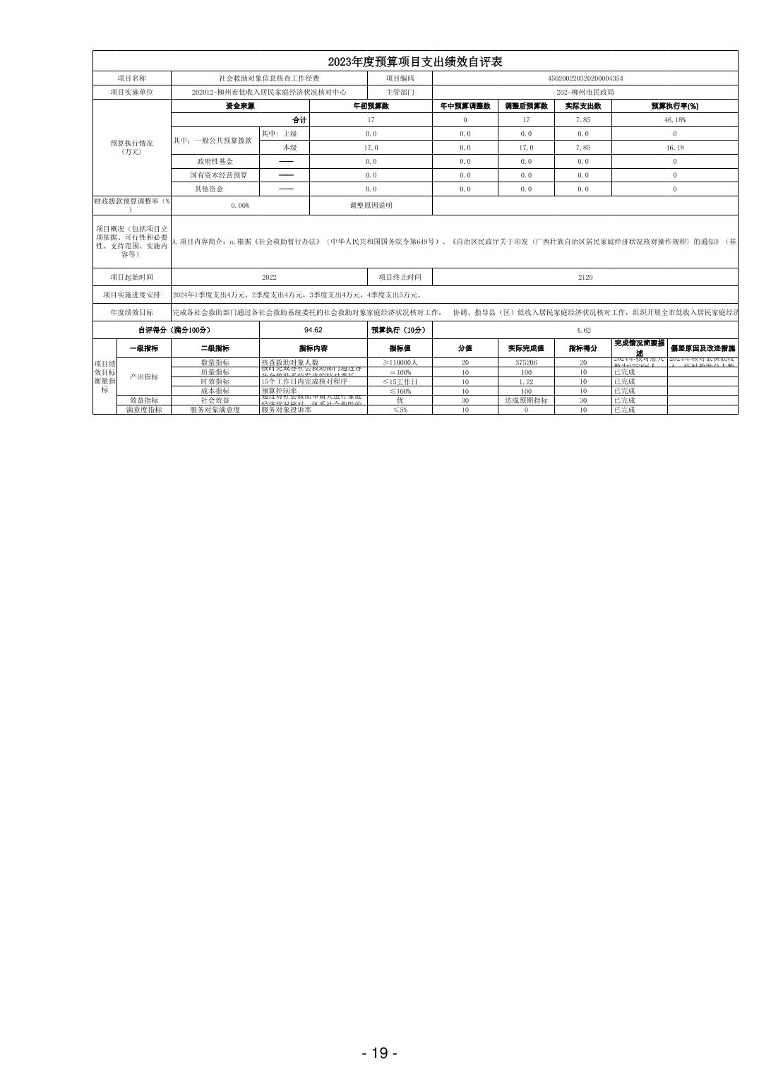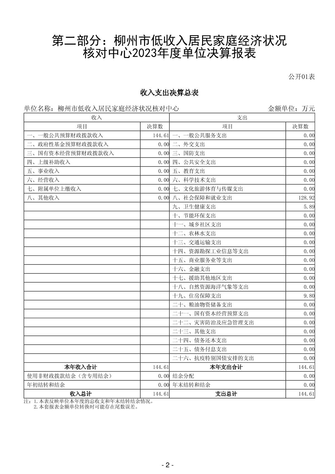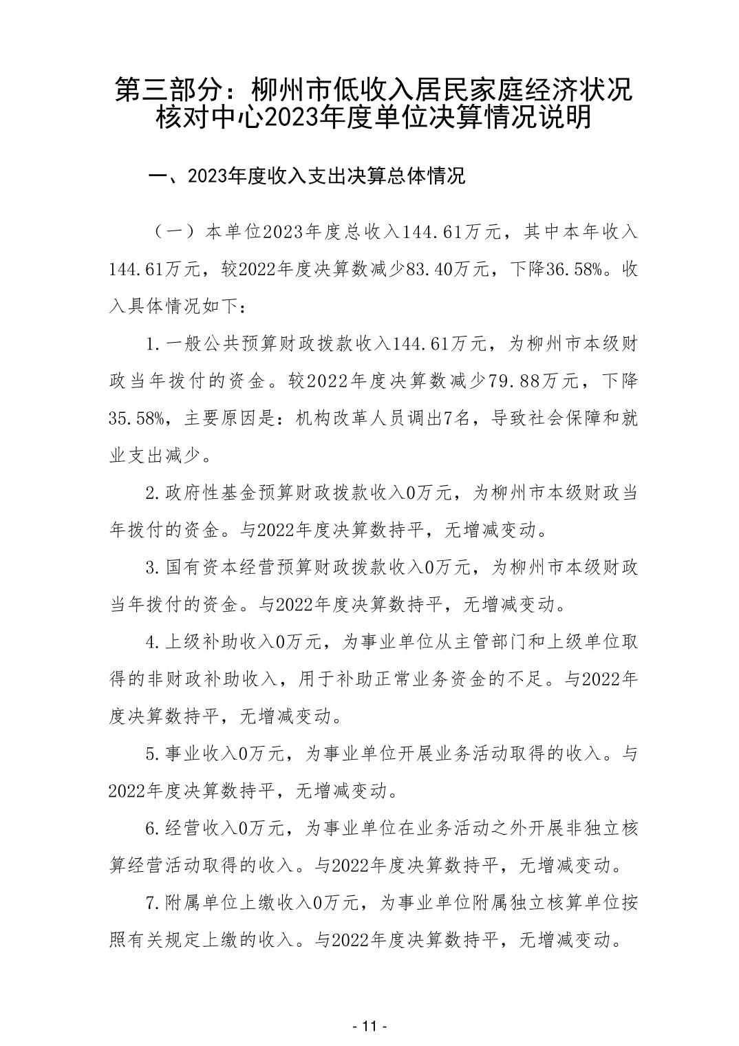 202012柳州市低收入居民家庭经济状况核对中心2023年度单位决算 - 2023 - 广西永利博彩网站