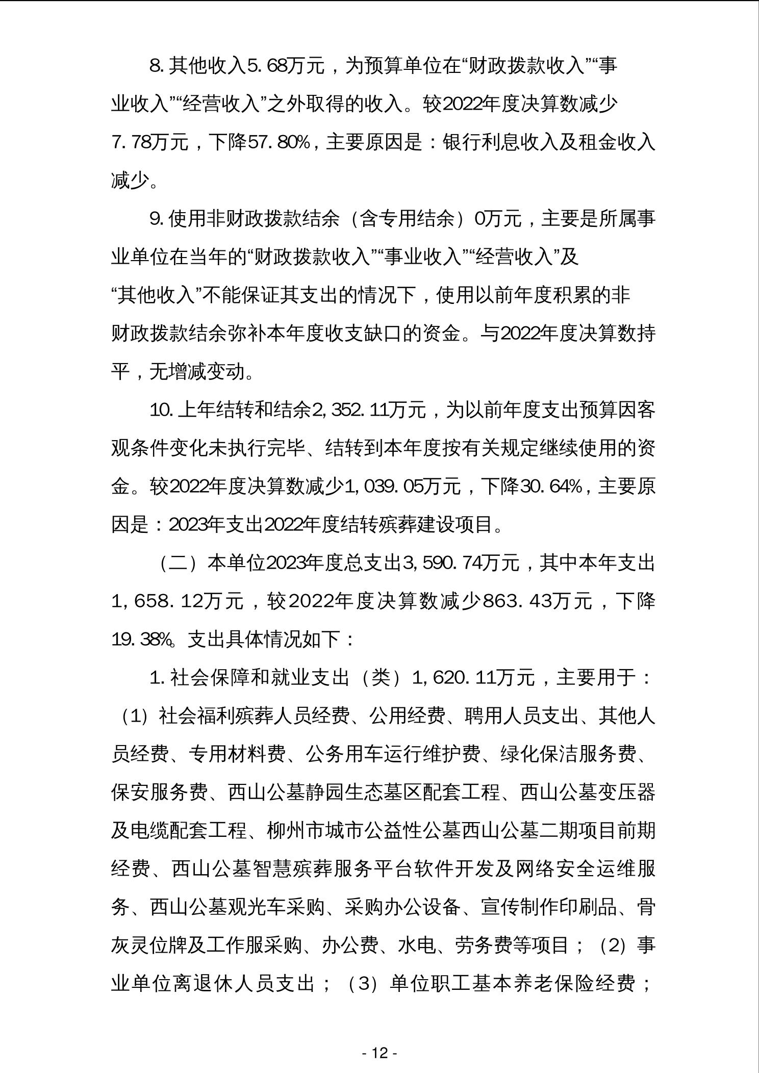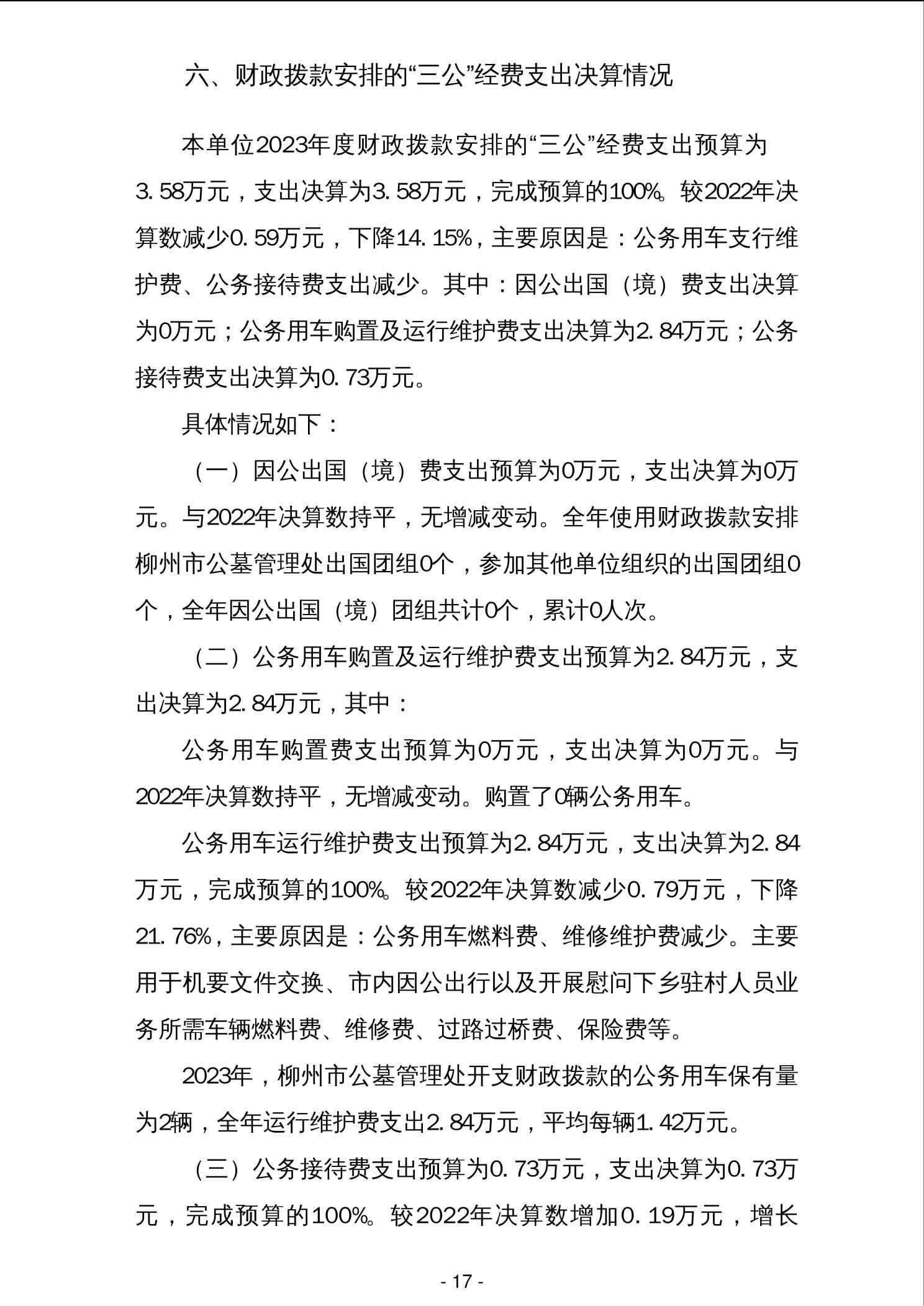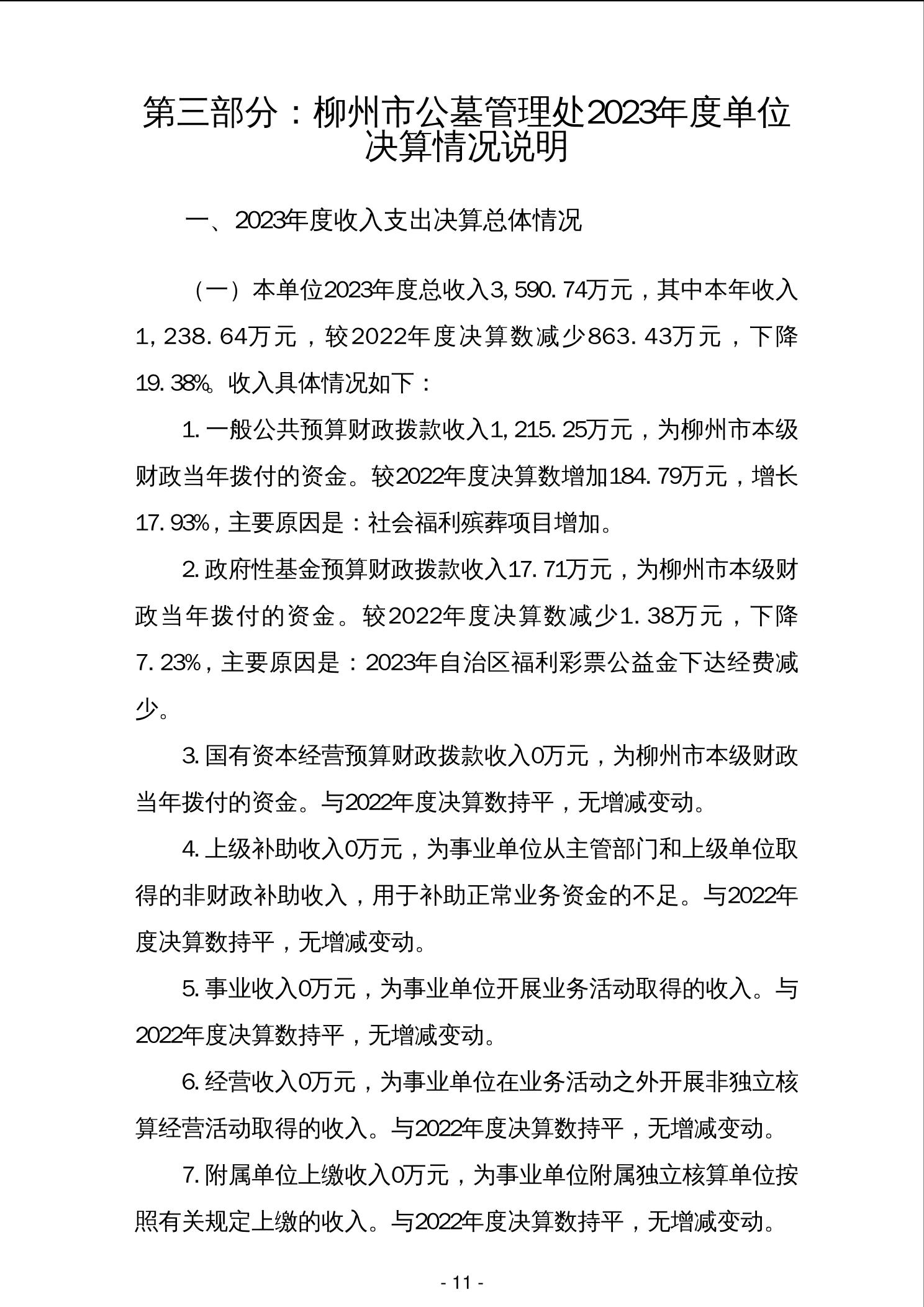 202003柳州市公墓管理处2023年度单位决算 - 2023 - 广西永利博彩网站