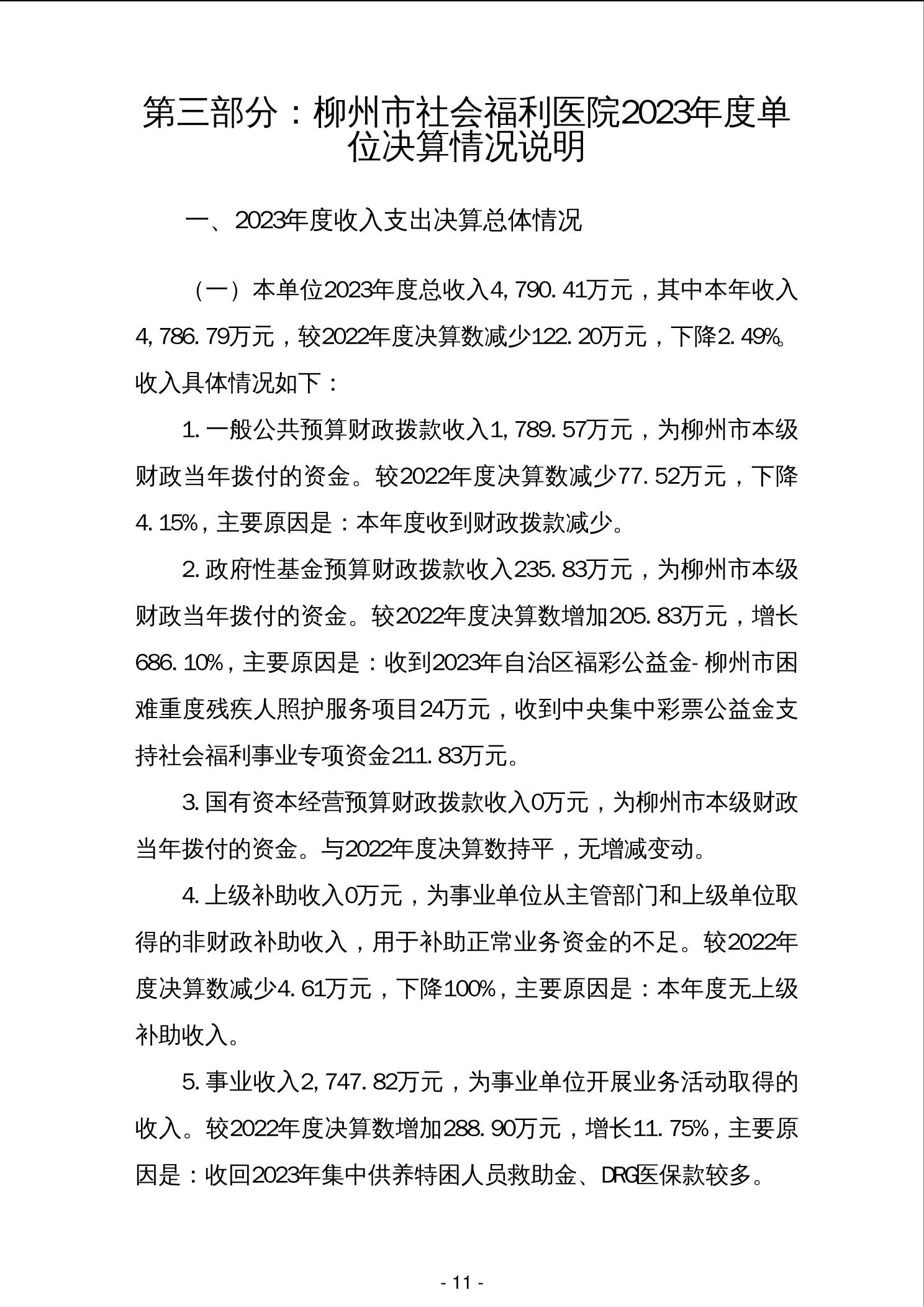 202007柳州市社会福利医院2023年度单位决算