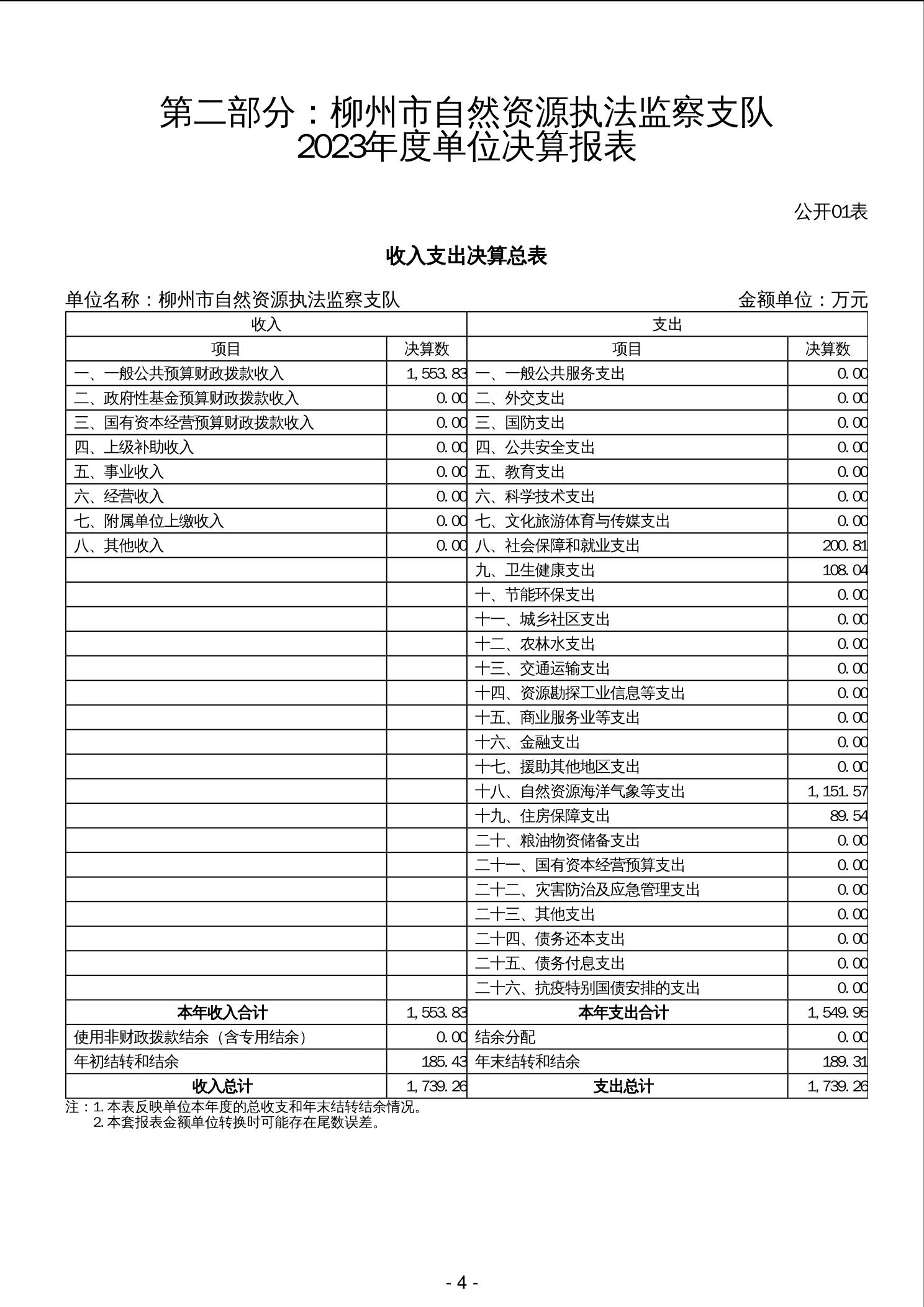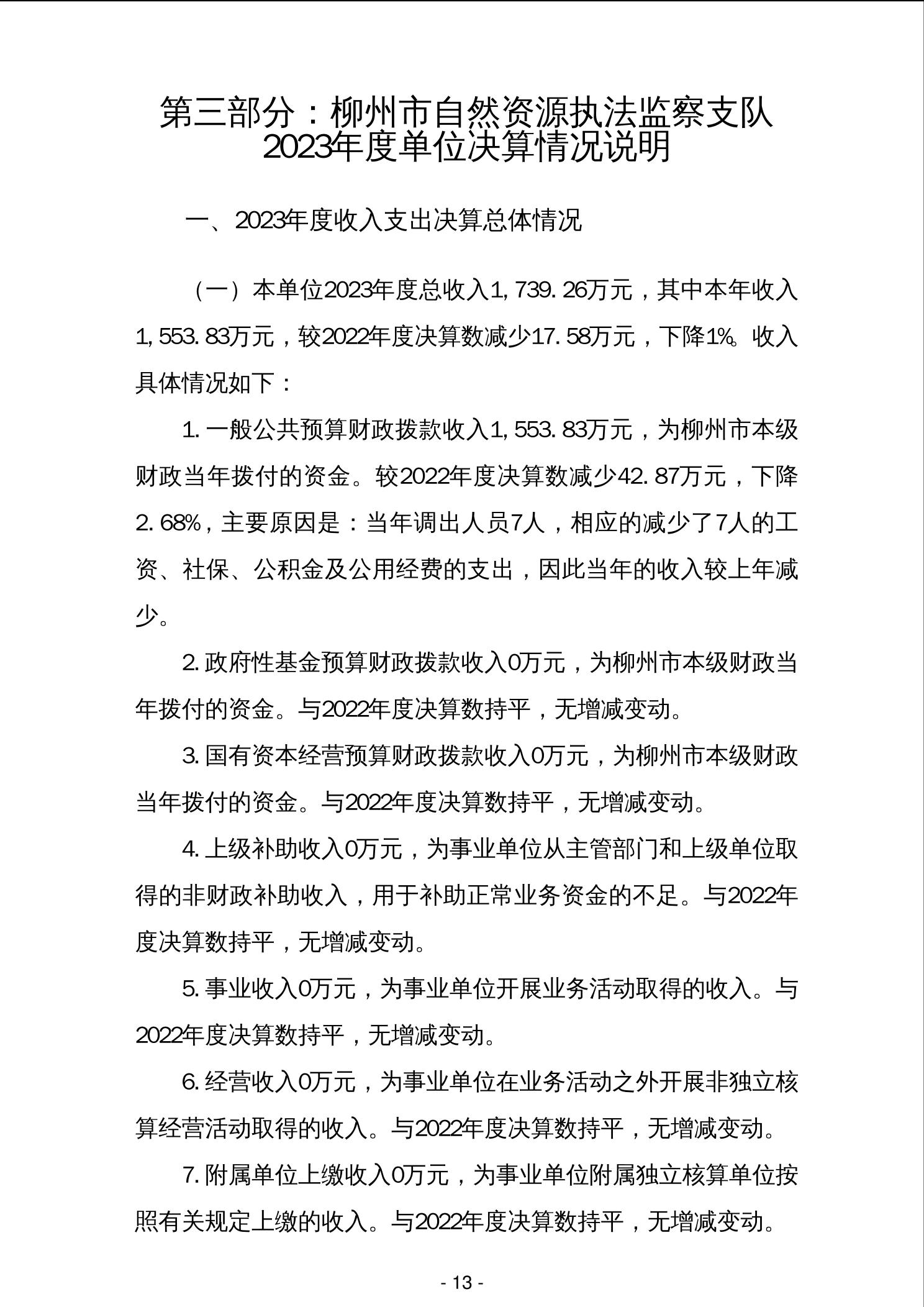 柳州市自然资源执法监察支队2023年度单位决算 - 2023 - 广西永利博彩网站