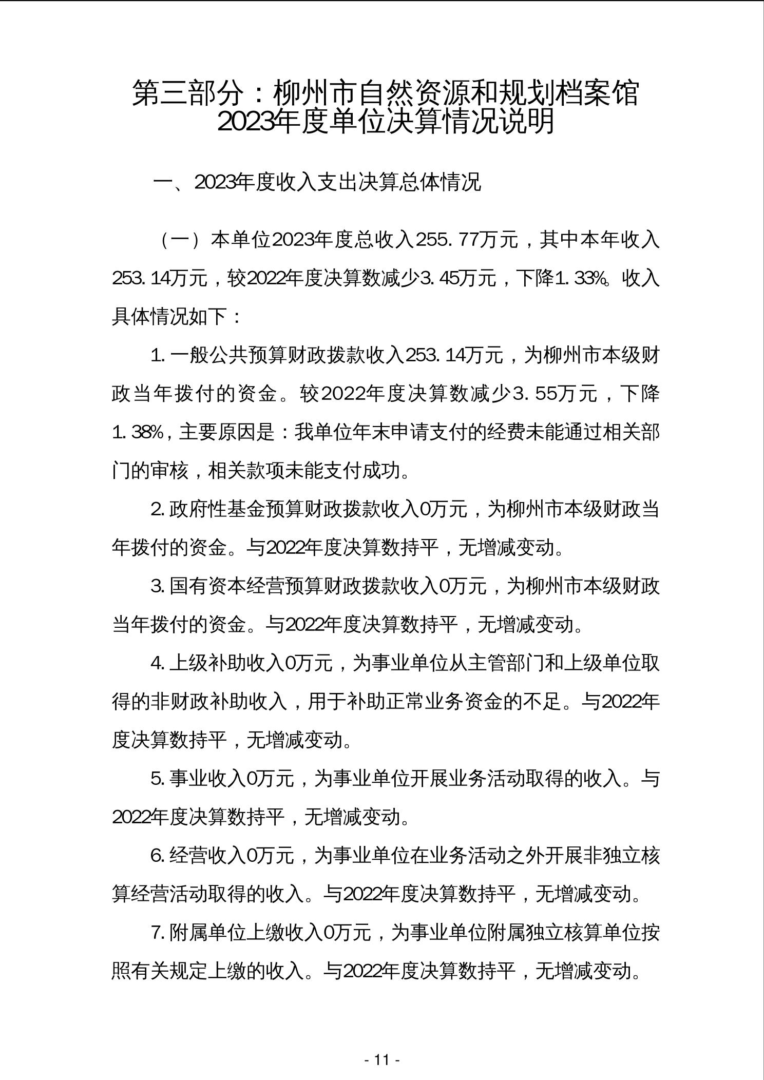 柳州市自然资源和规划档案馆2023年度单位决算 - 2023 - 广西永利博彩网站