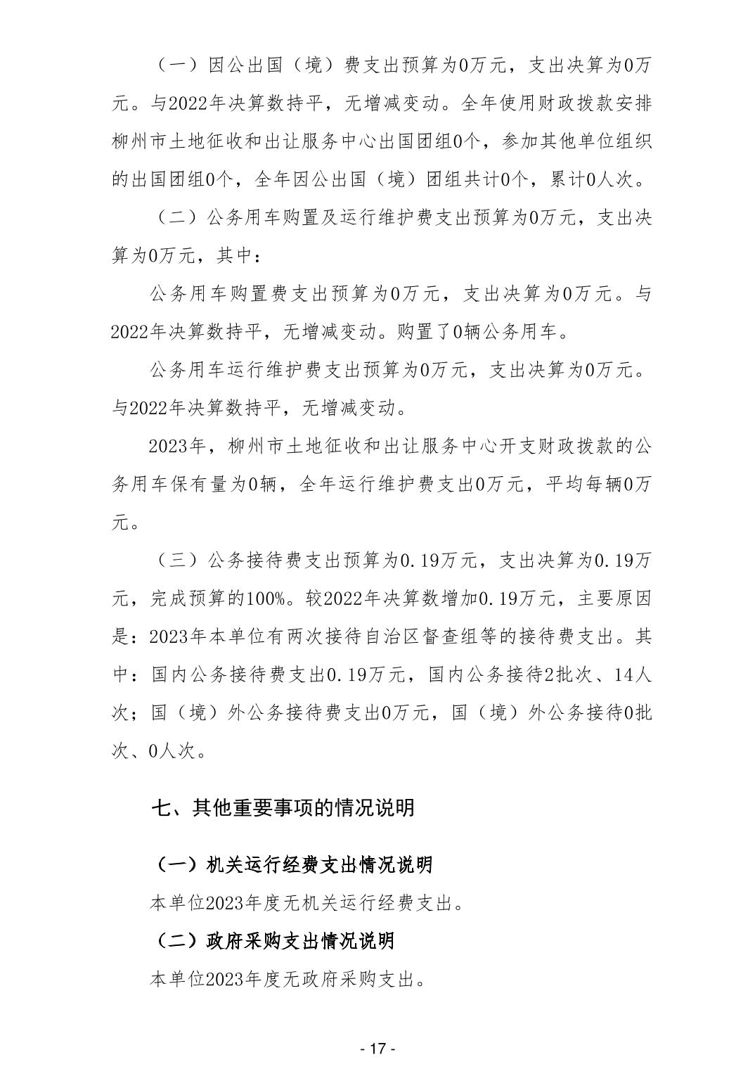 柳州市土地征收和出让服务中心2023年度单位决算 - 2023 - 广西永利博彩网站