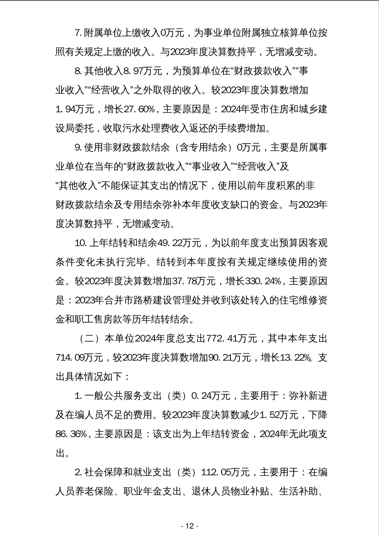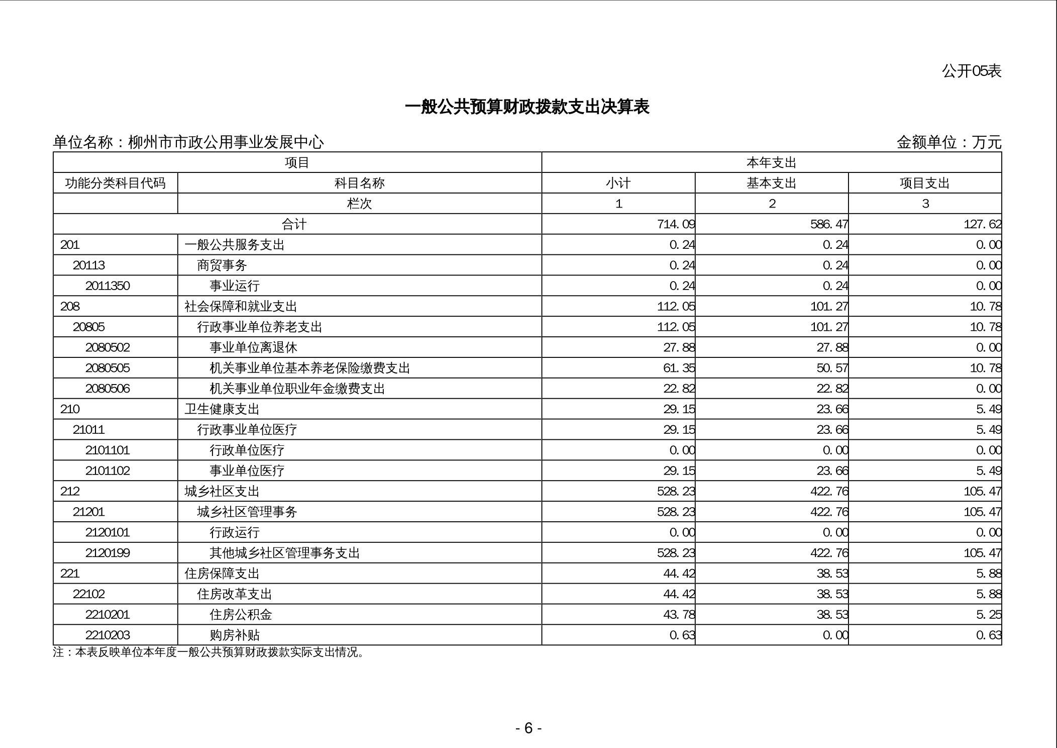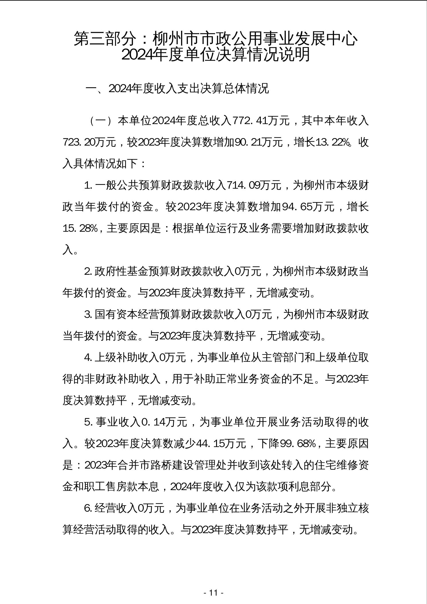柳州市市政公用事业发展中心2024年度单位决算