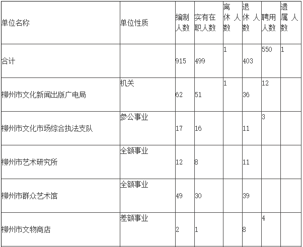 机构和人员情况表