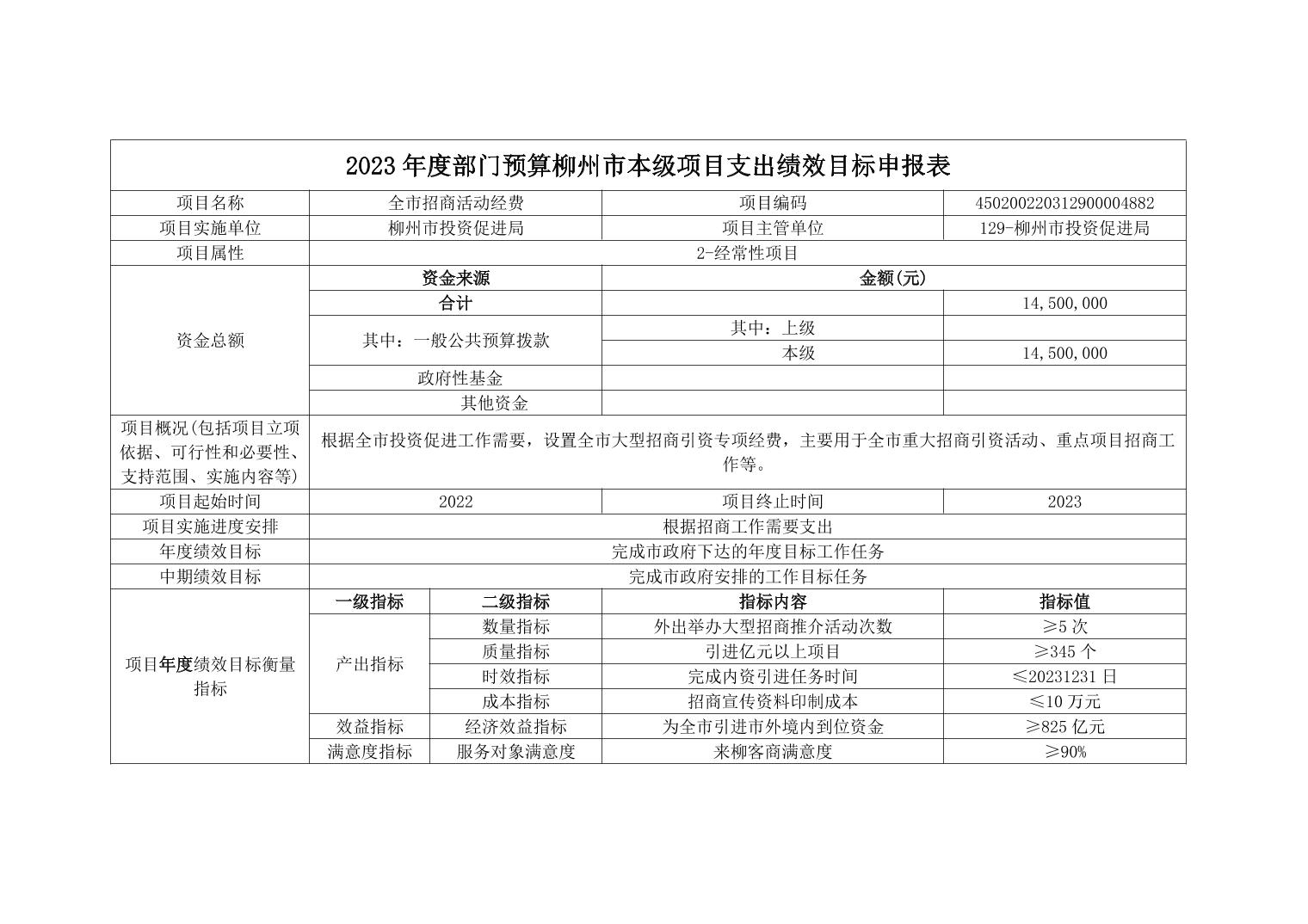 柳州市投资促进局2023年部门预算公开说明
