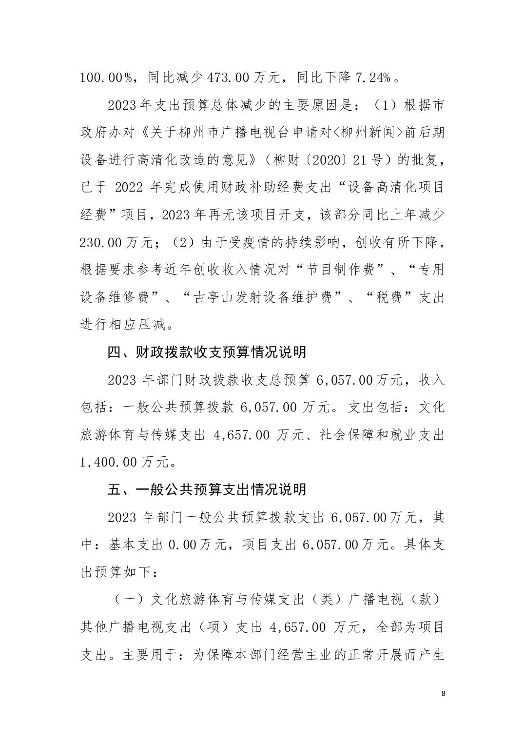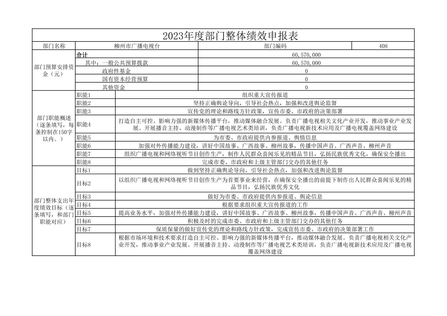 2023年408柳州市广播电视台部门整体支出绩效目标申报表.xls