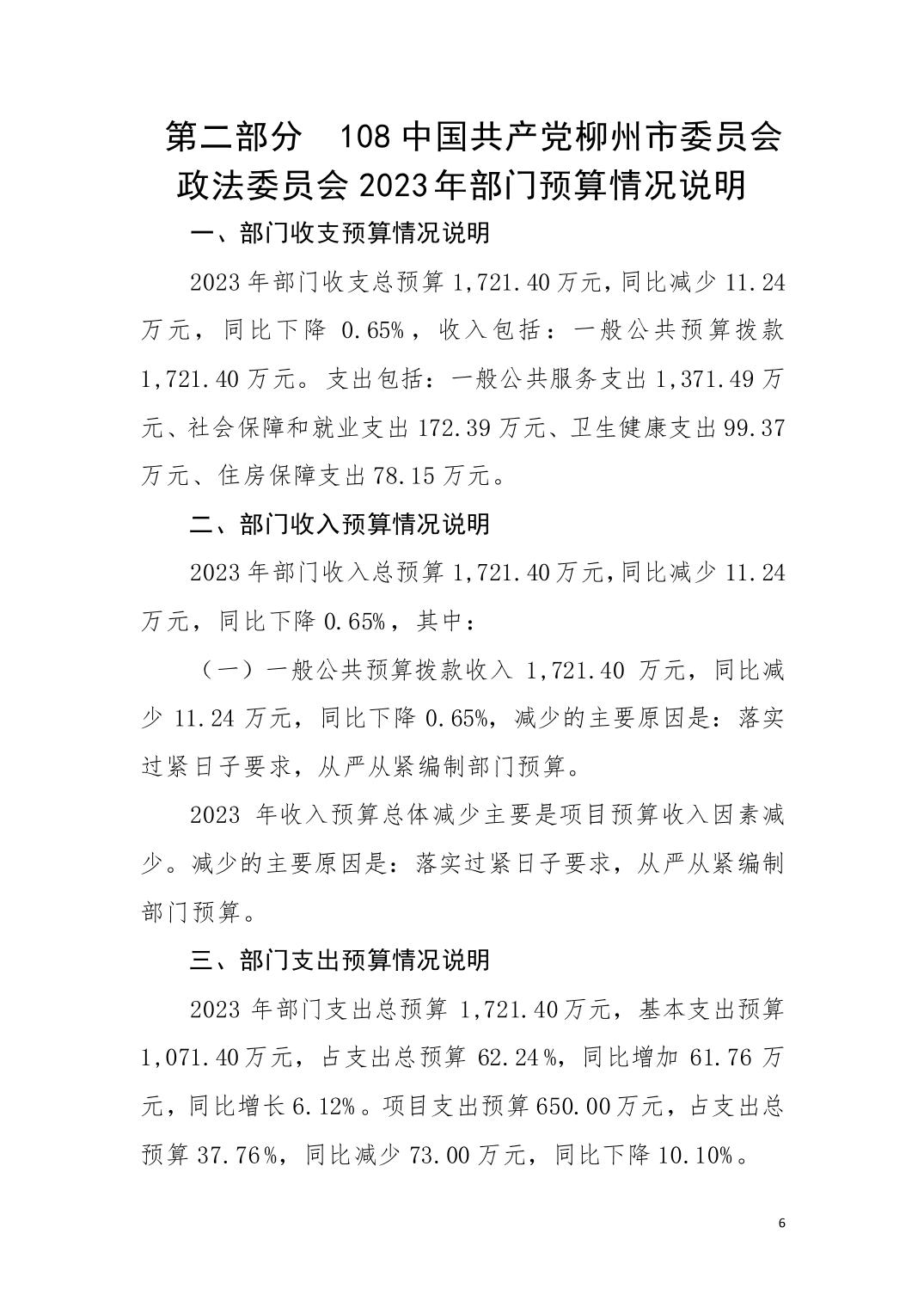 108中国共产党柳州市委员会政法委员会2023年部门预算公开说明.pdf