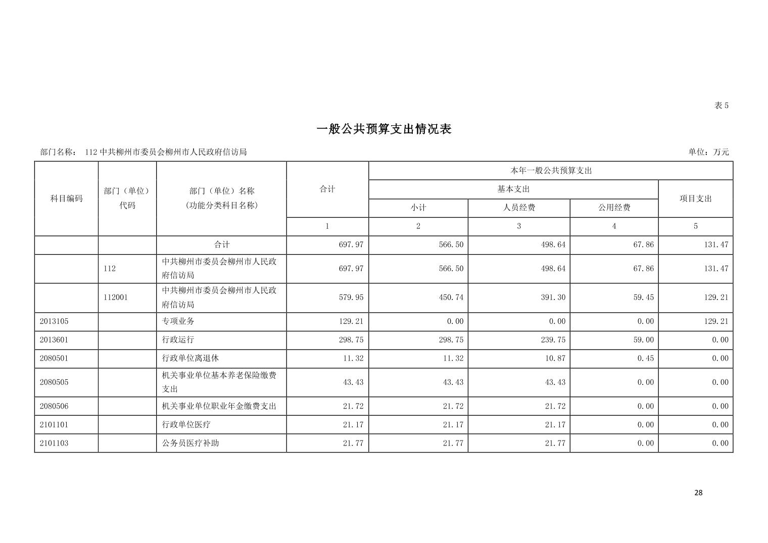 112中共柳州市委员会柳州市人民政府信访局2023年部门预算公开说明