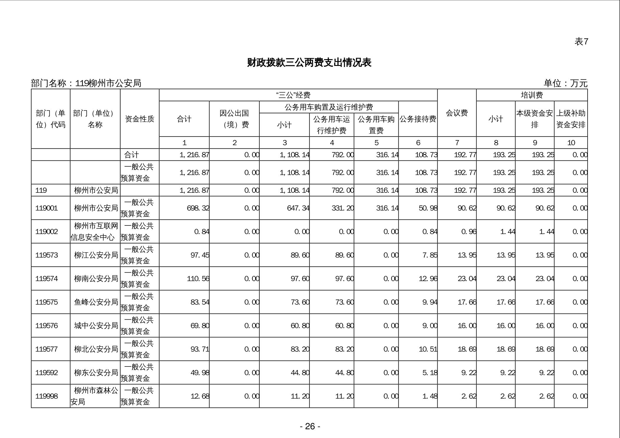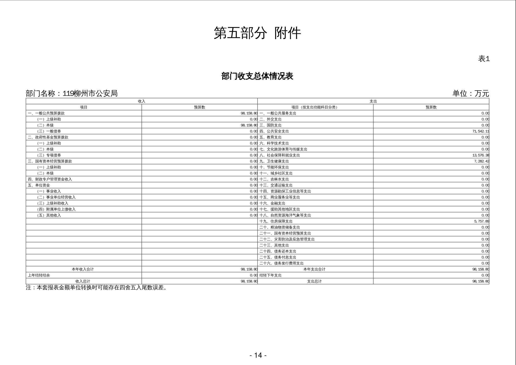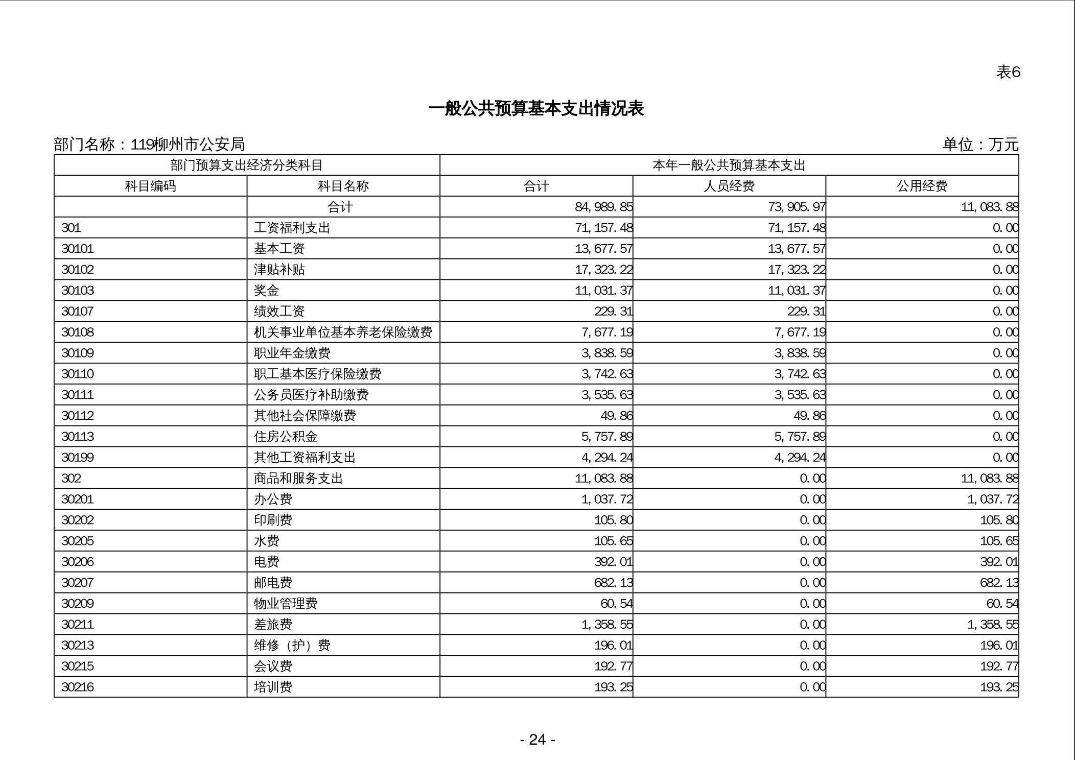 119柳州市公安局2024年部门预算公开说明