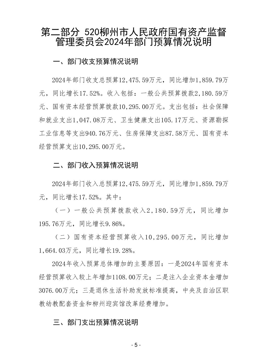 520柳州市人民政府国有资产监督管理委员会2024年部门预算公开说明
