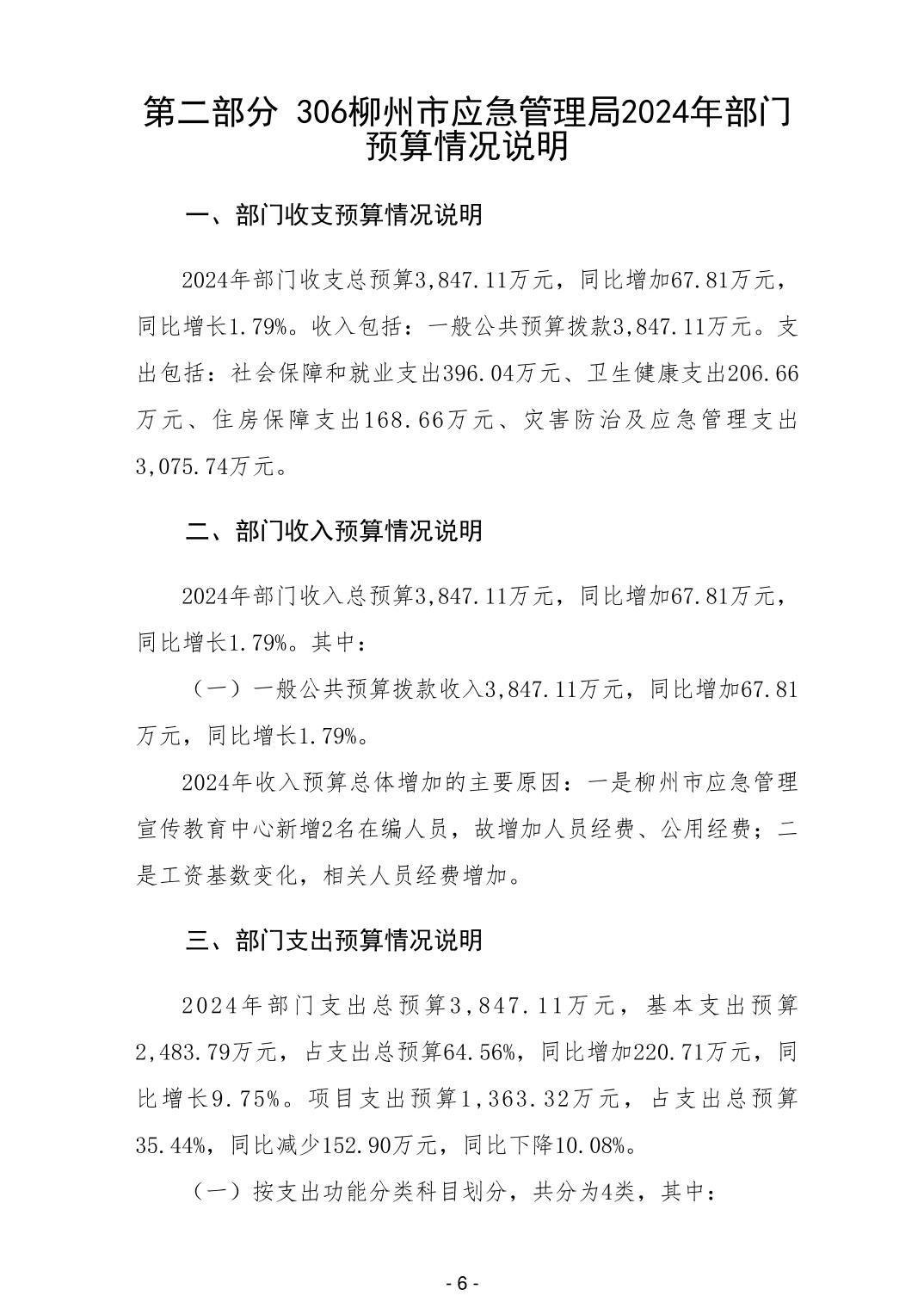 306柳州市应急管理局2024年部门预算公开说明 - 2024 - 广西永利博彩网站