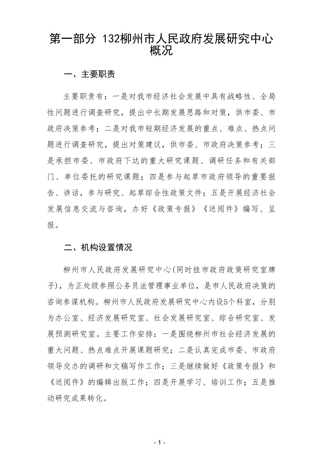 132柳州市人民政府发展研究中心2025年部门预算公开说明 - 2025 - 广西永利博彩网站