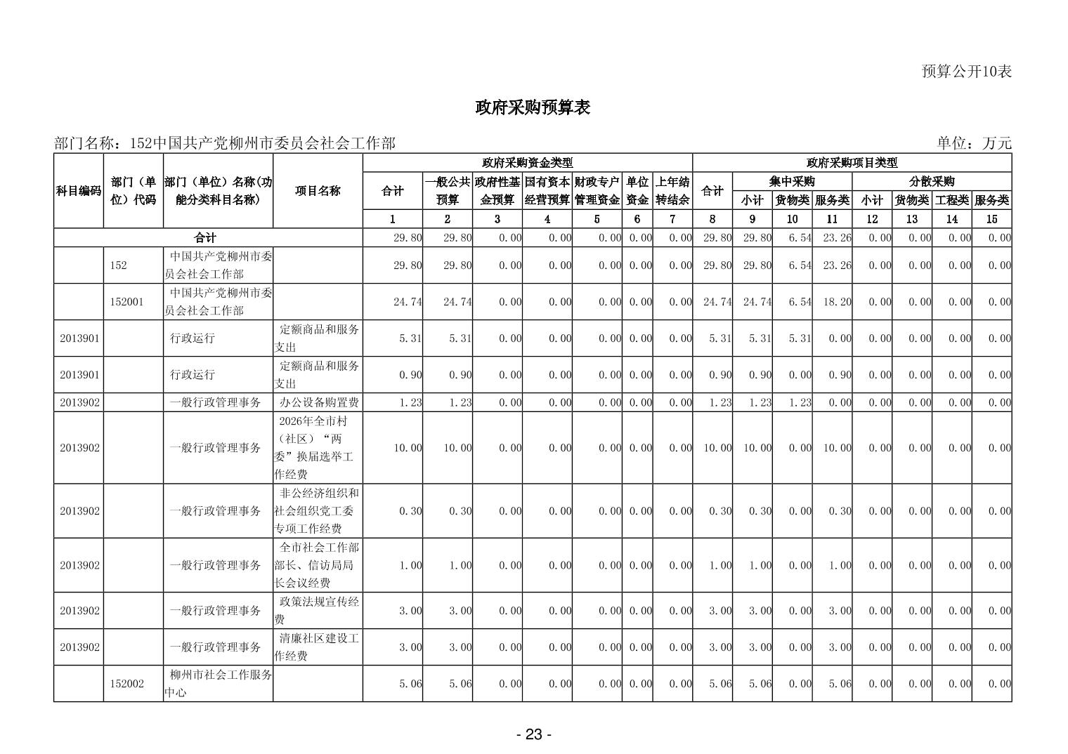 152中国共产党柳州市委员会社会工作部2026年部门预算公开说明.pdf