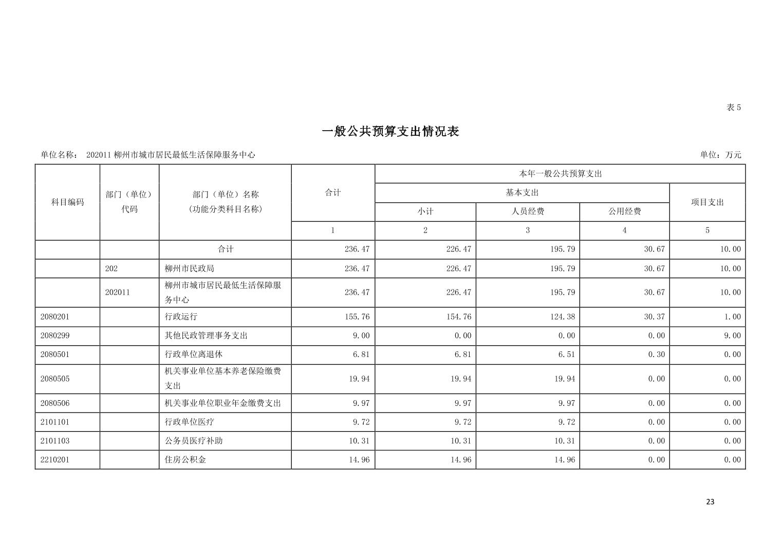 202011柳州市城市居民最低生活保障服务中心2023年单位预算公开说明 - 2023 - 广西永利博彩网站