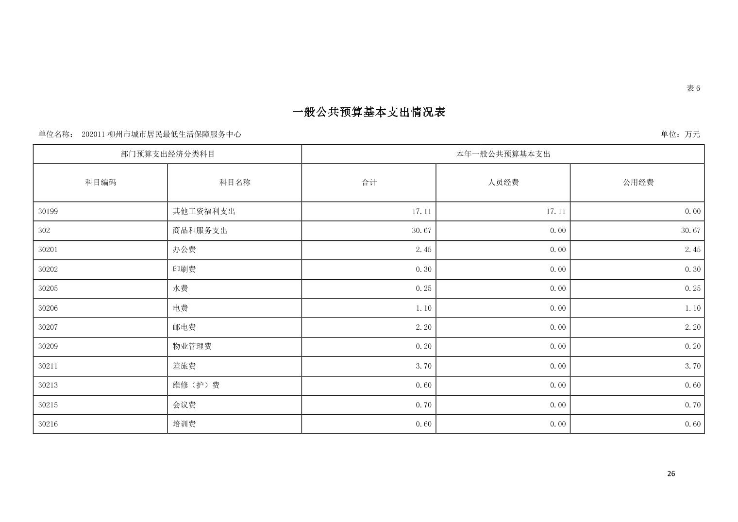 202011柳州市城市居民最低生活保障服务中心2023年单位预算公开说明