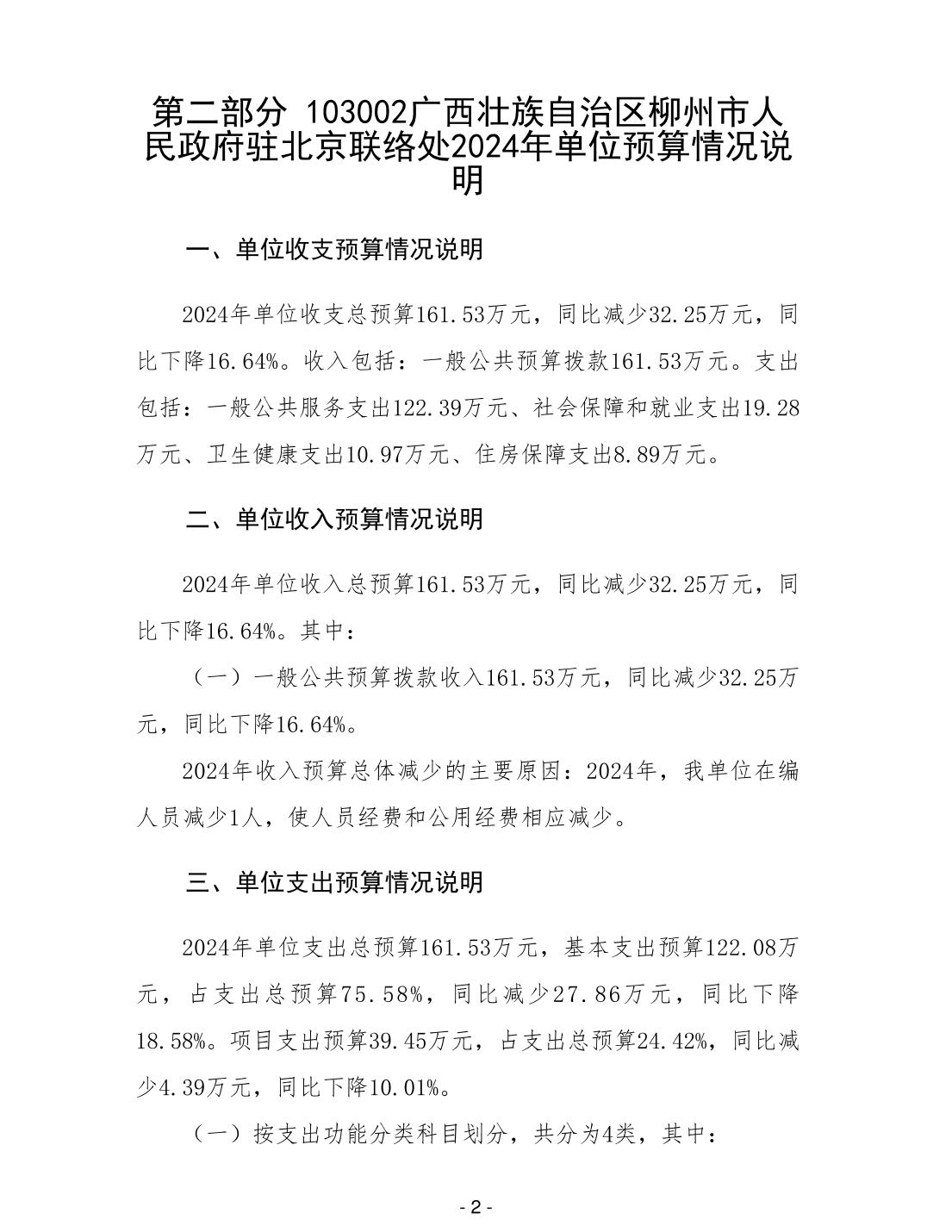 103002柳州市人民政府驻北京联络处2024年单位预算公开 - 2024 - 广西永利博彩网站