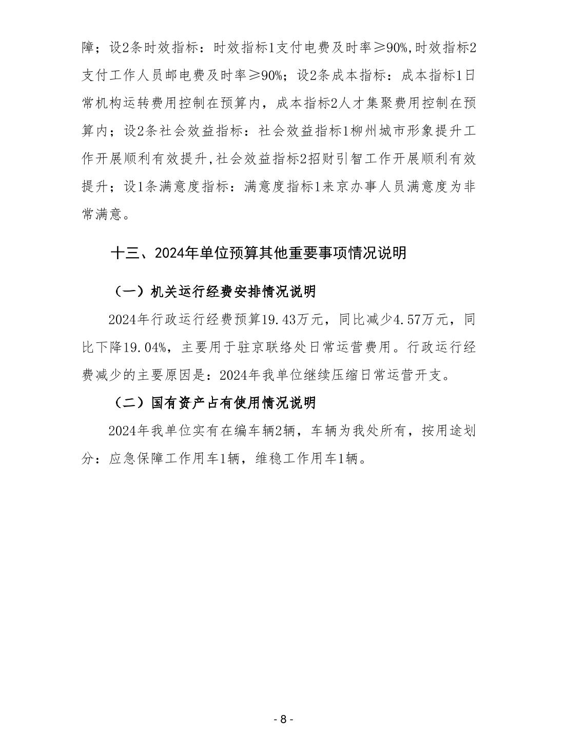 103002柳州市人民政府驻北京联络处2024年单位预算公开