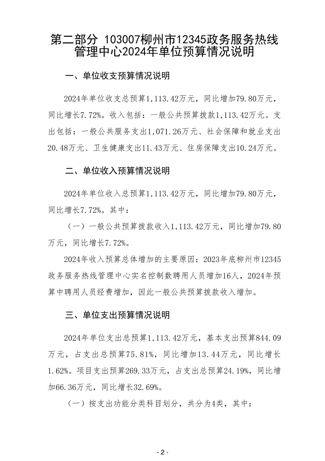 103007柳州市12345政务服务热线管理中心2024年单位预算公开 - 2024 - 广西永利博彩网站