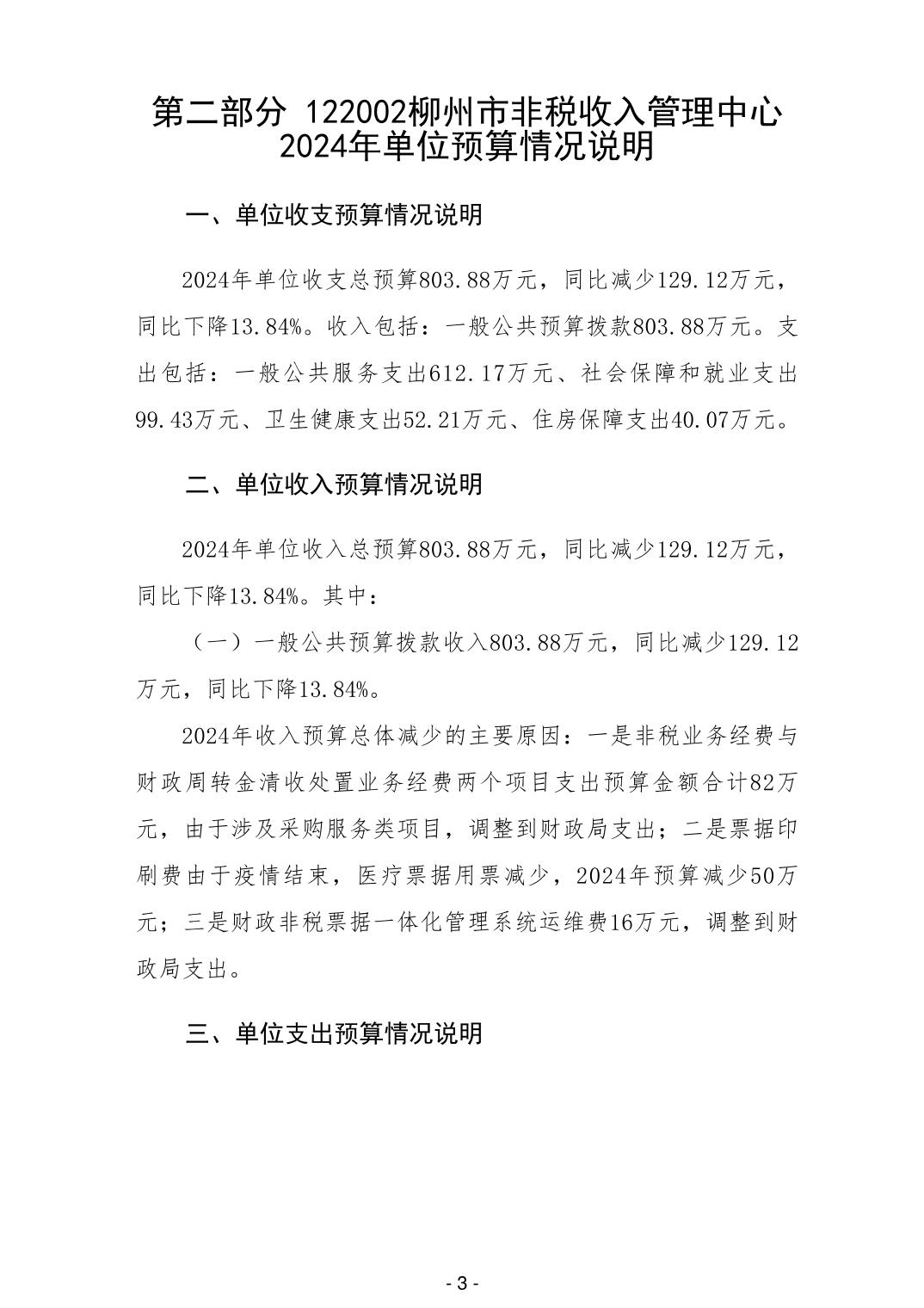 122002柳州市非税收入管理中心2024年单位预算公开说明 - 2024 - 广西永利博彩网站