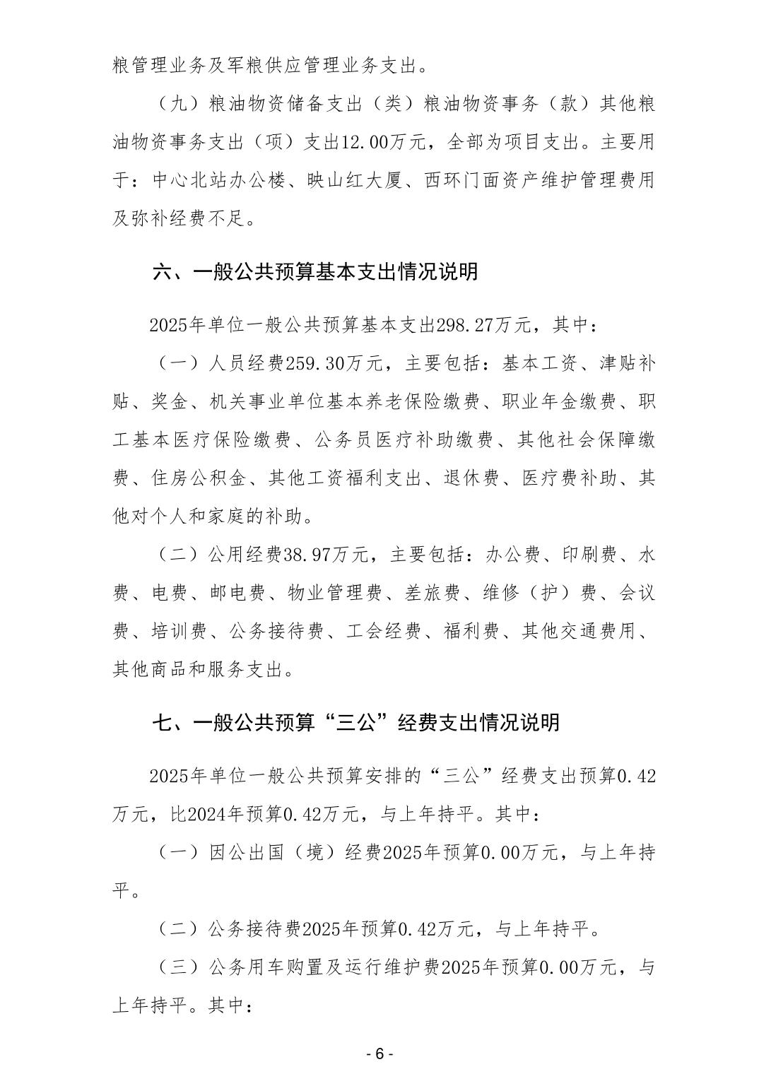 301005柳州市军粮供应管理中心2025年单位预算公开说明