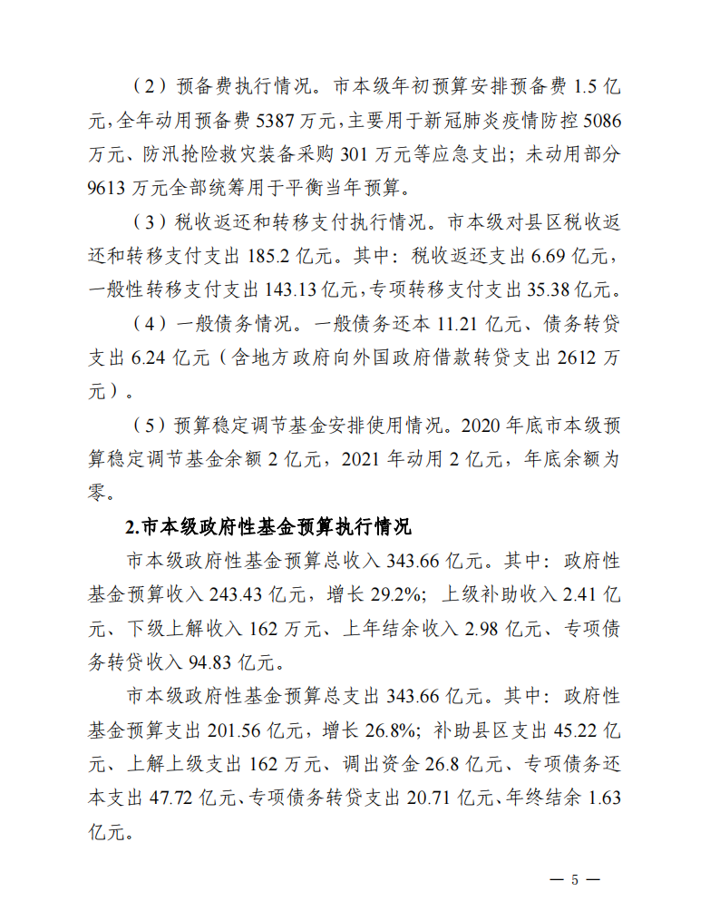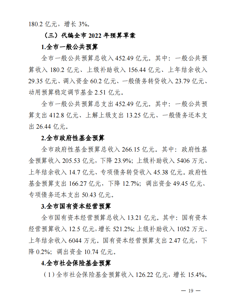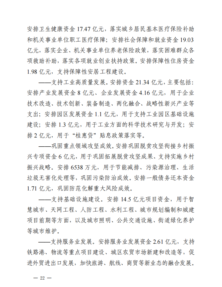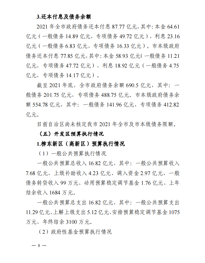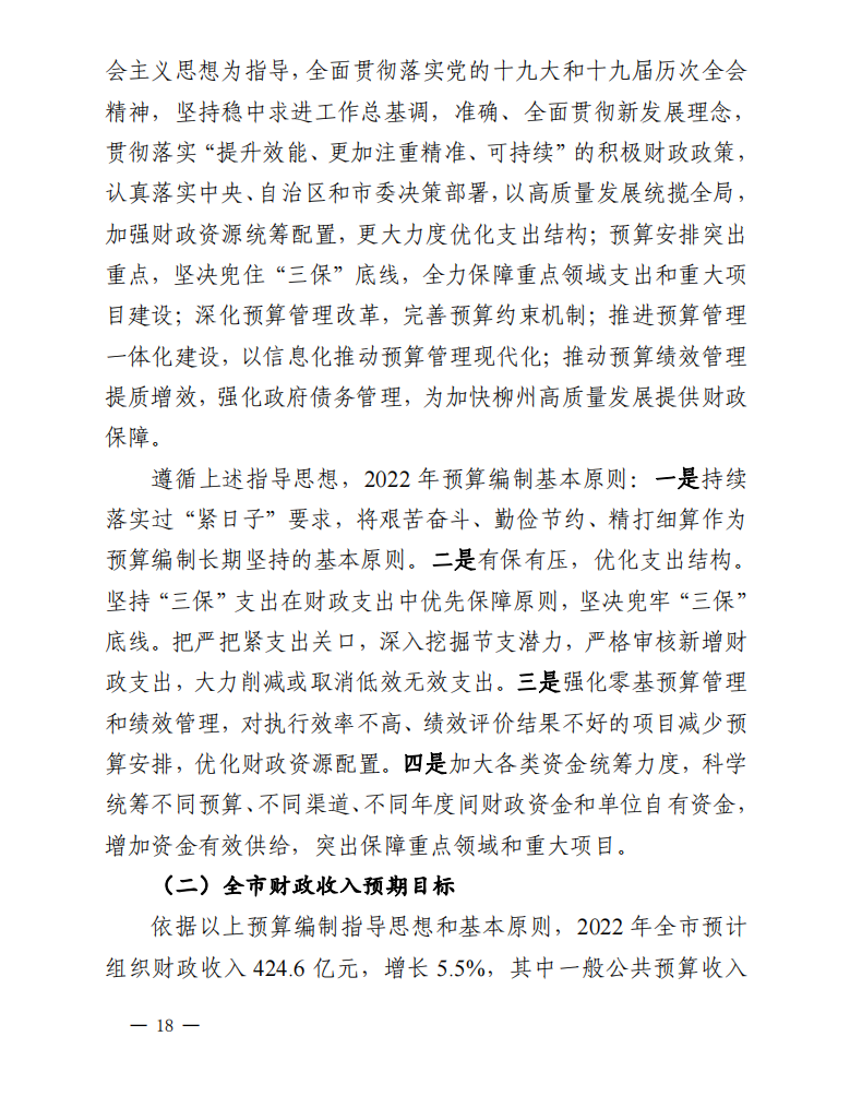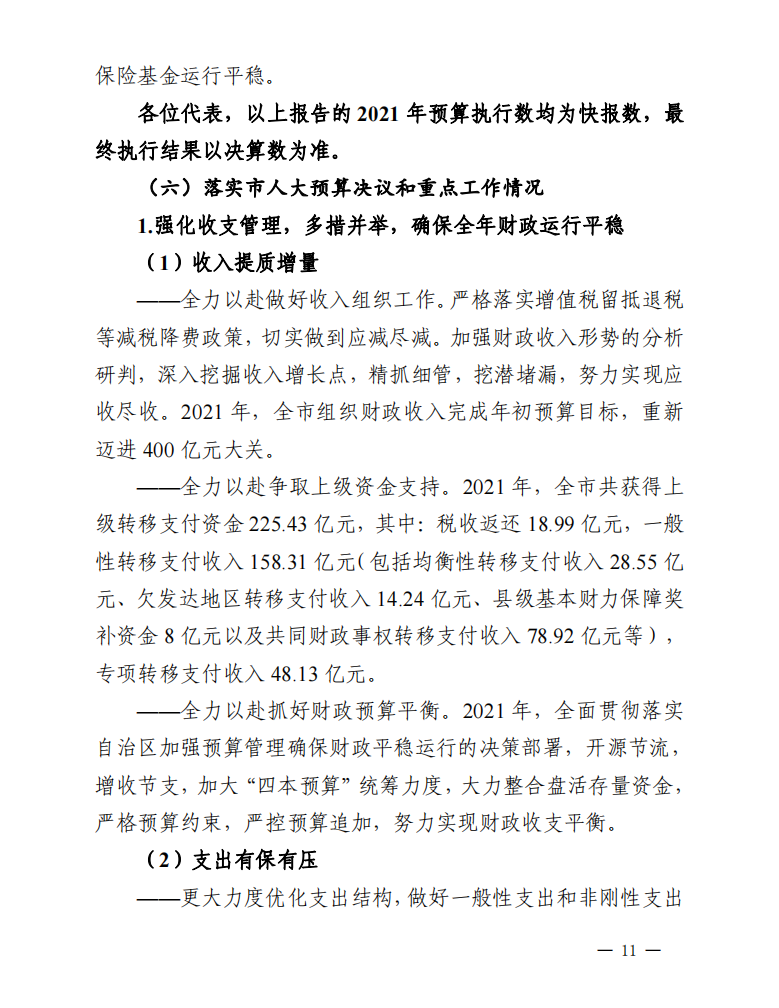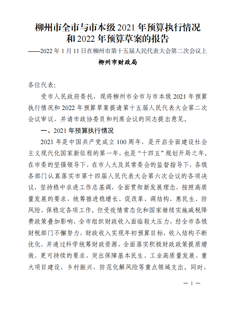 柳州市全市与市本级2021年预算执行情况和2022年预算草案的报告