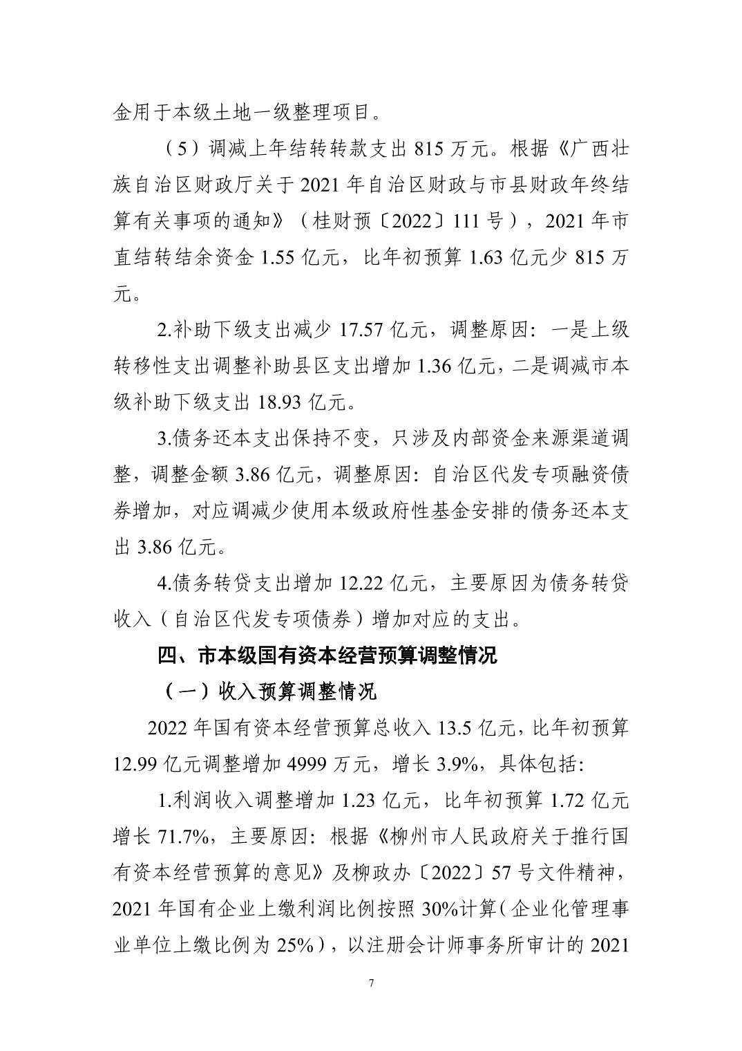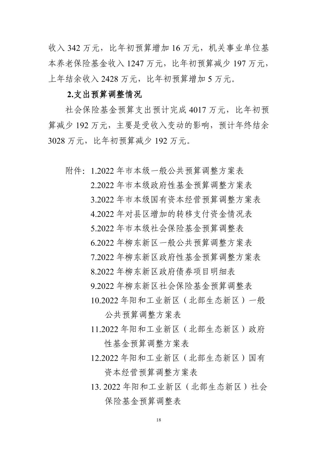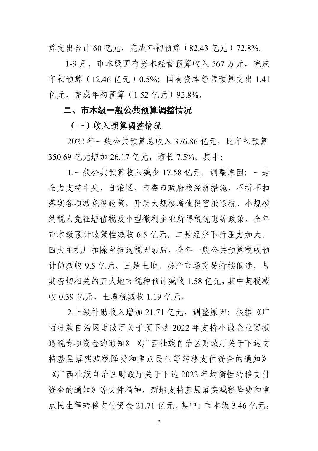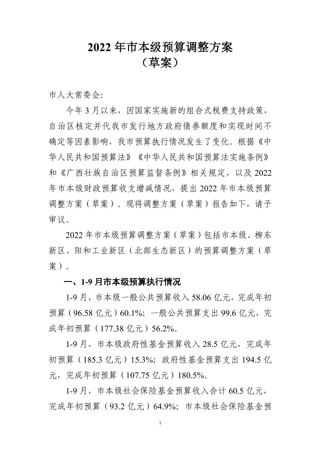 2022年市本级预算调整方案(草案)