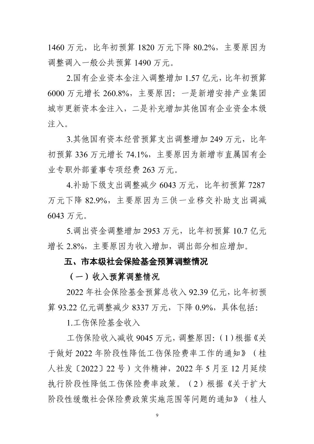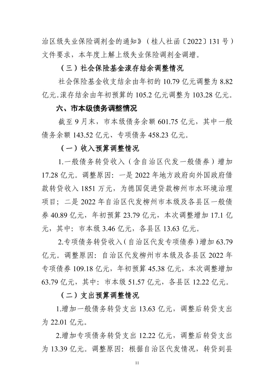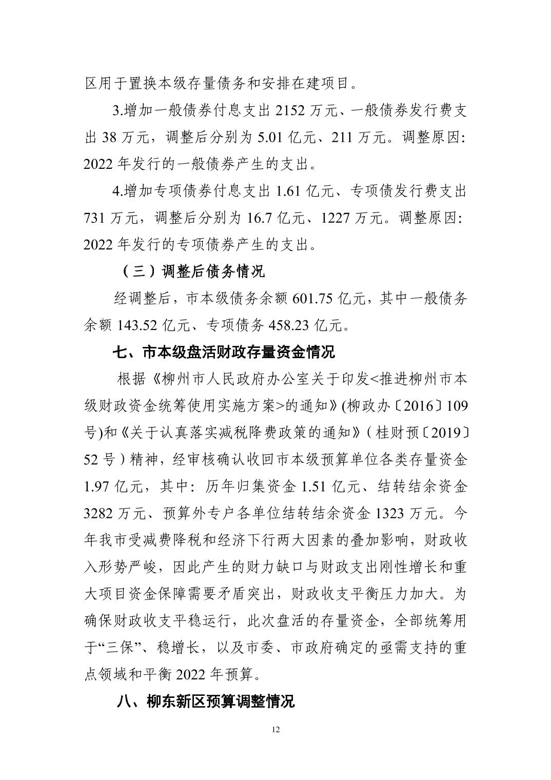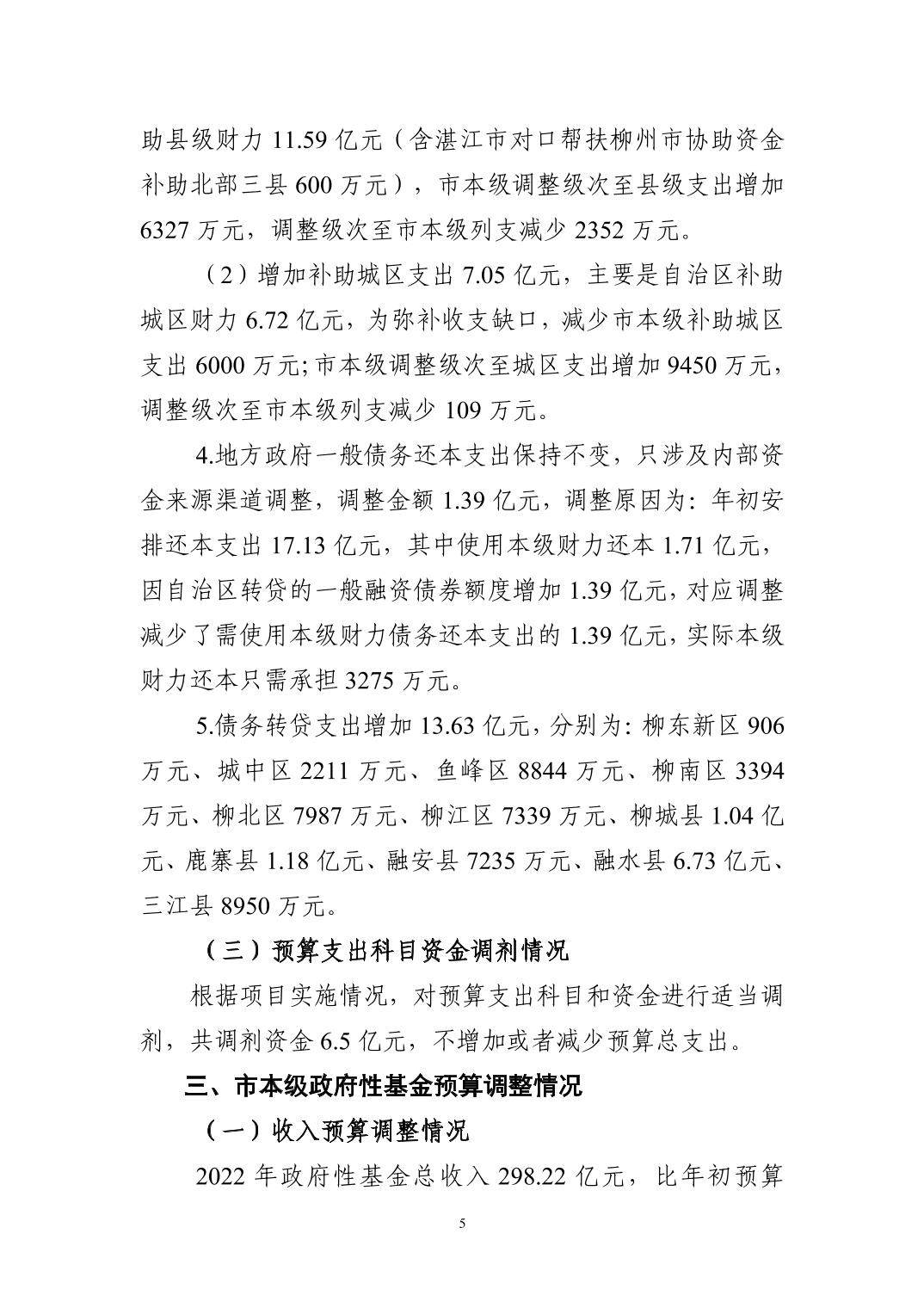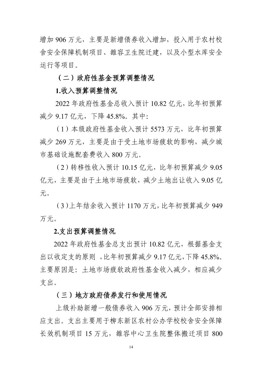 2022年市本级预算调整方案(草案)