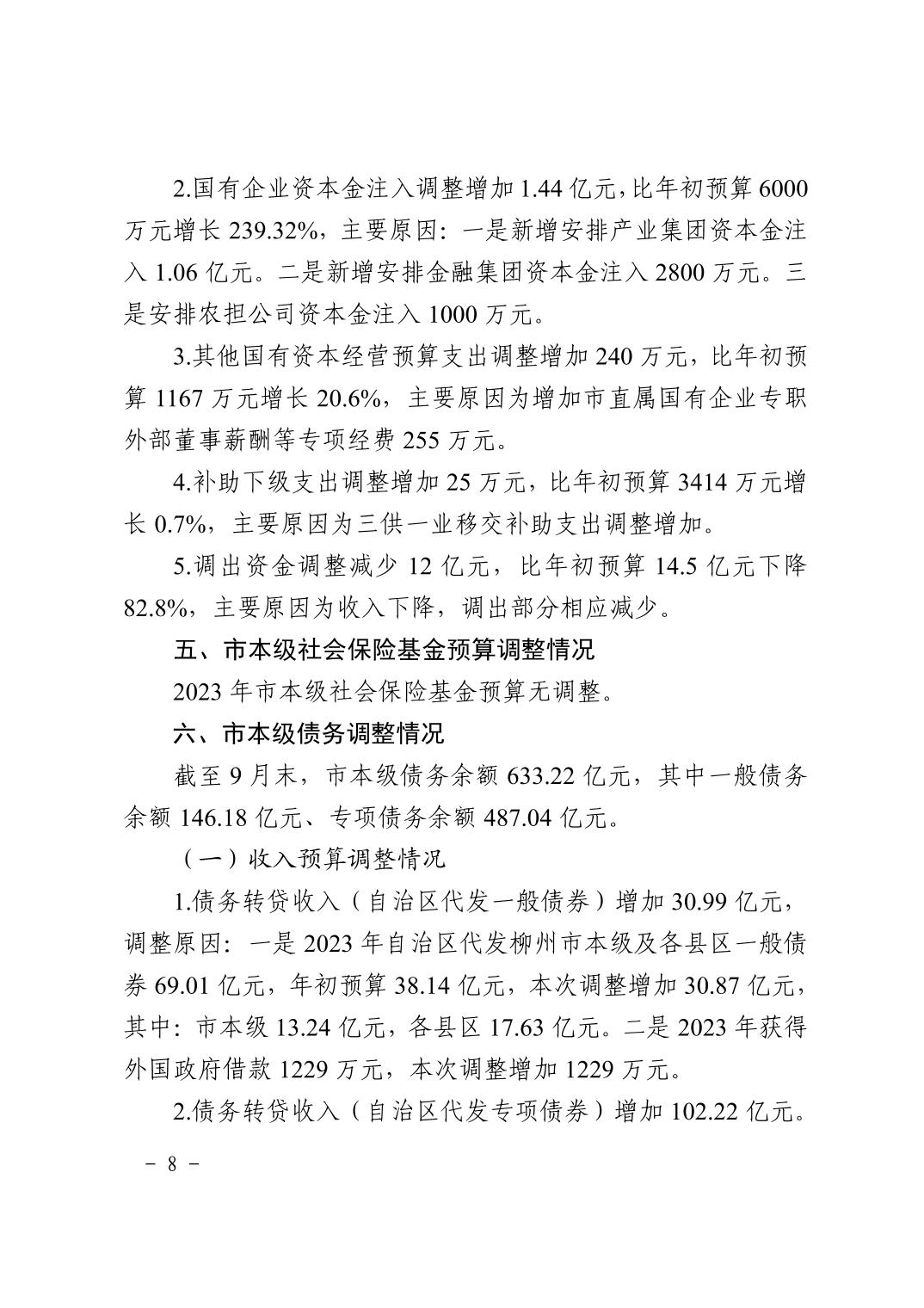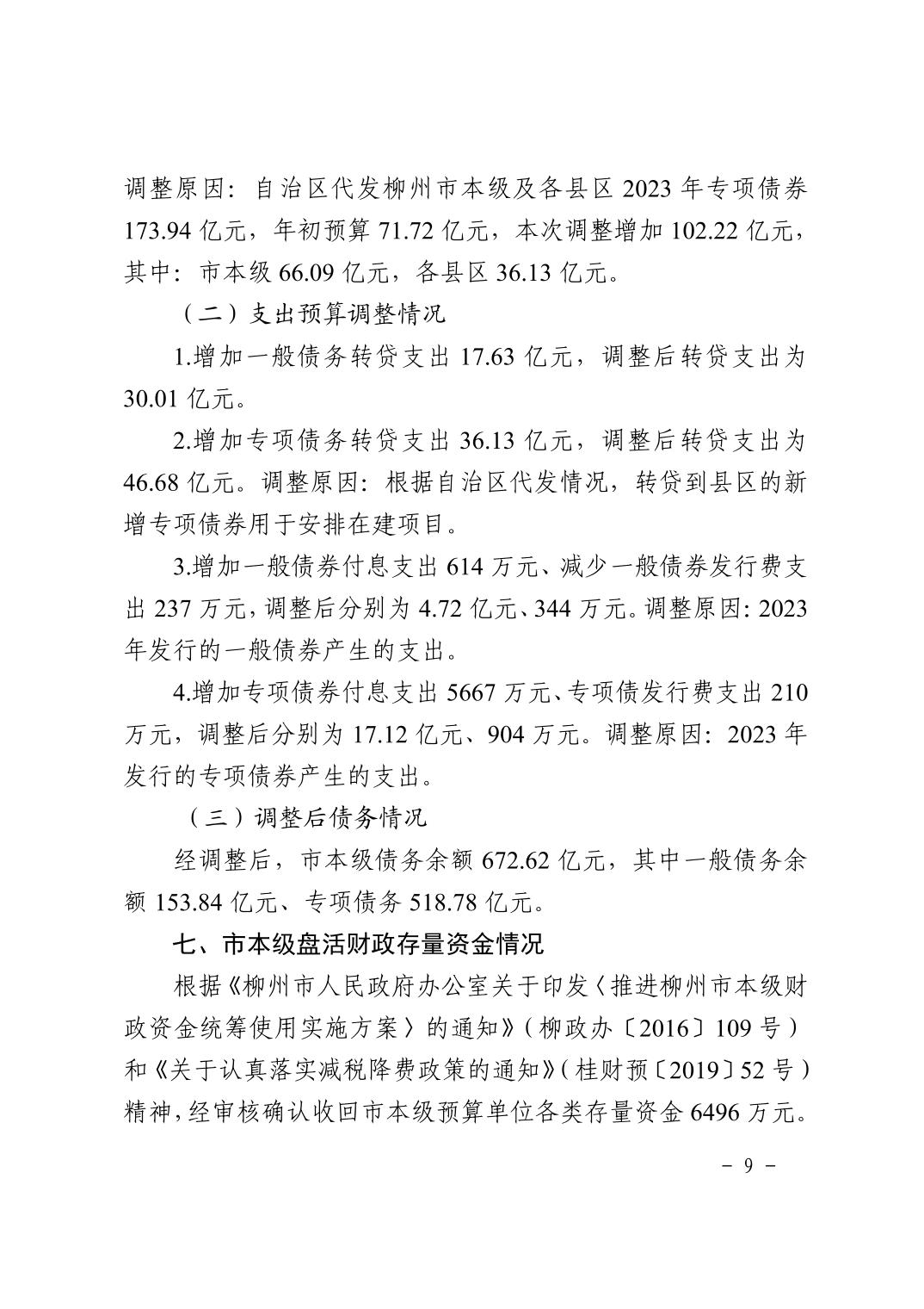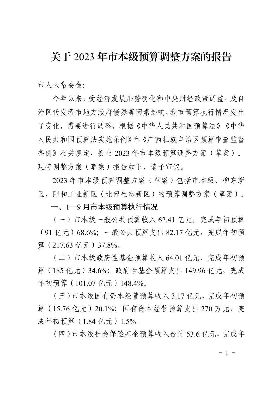 关于2023年市本级预算调整方案的报告 - 2023 - 广西永利博彩网站