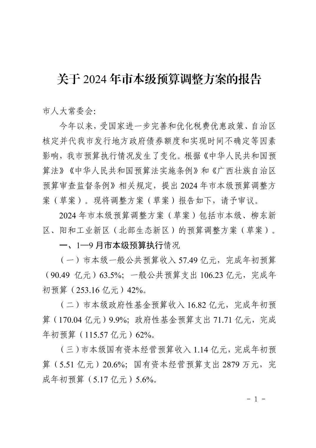 关于2024年市本级预算调整方案的报告 - 2024 - 广西永利博彩网站
