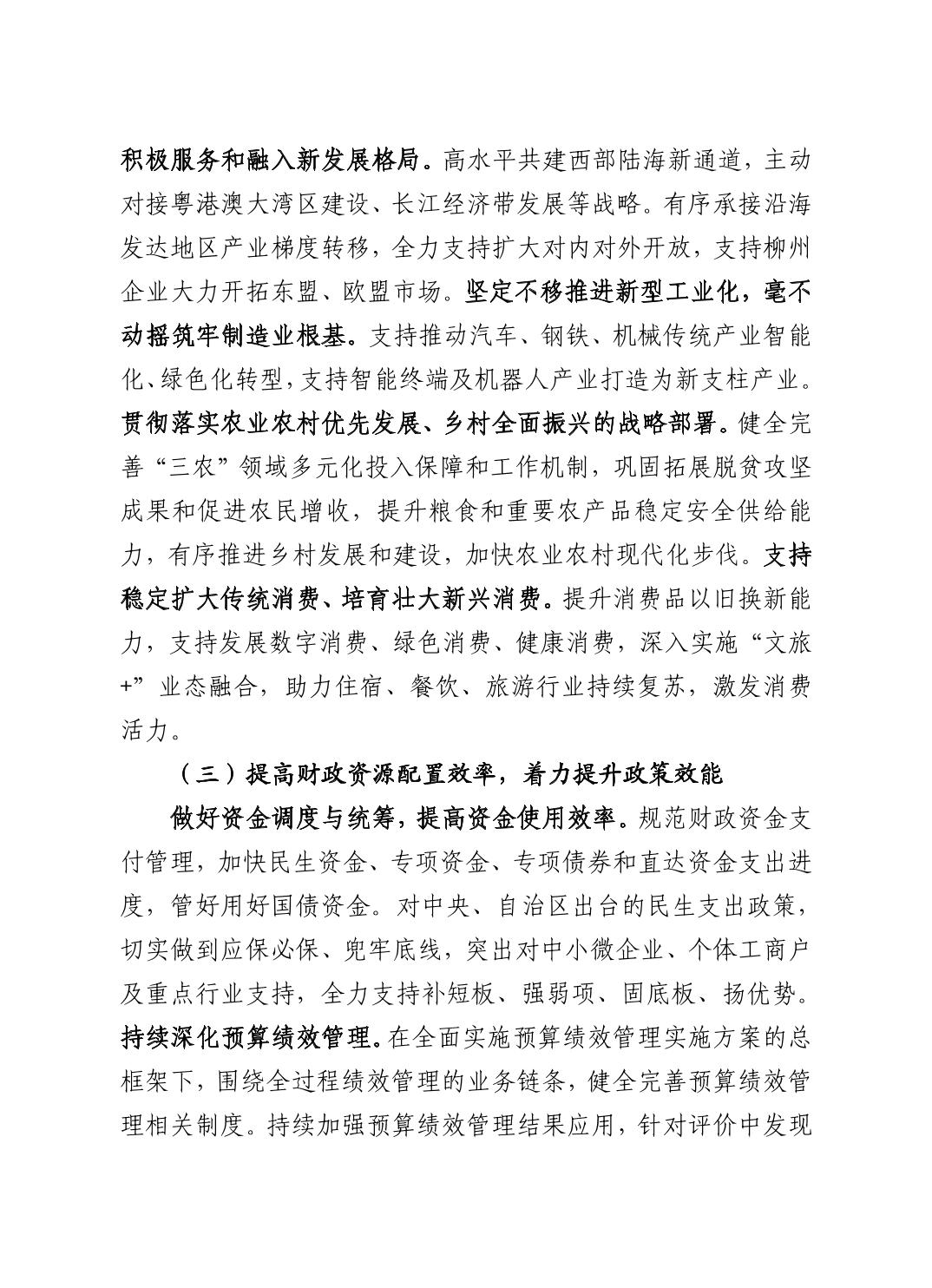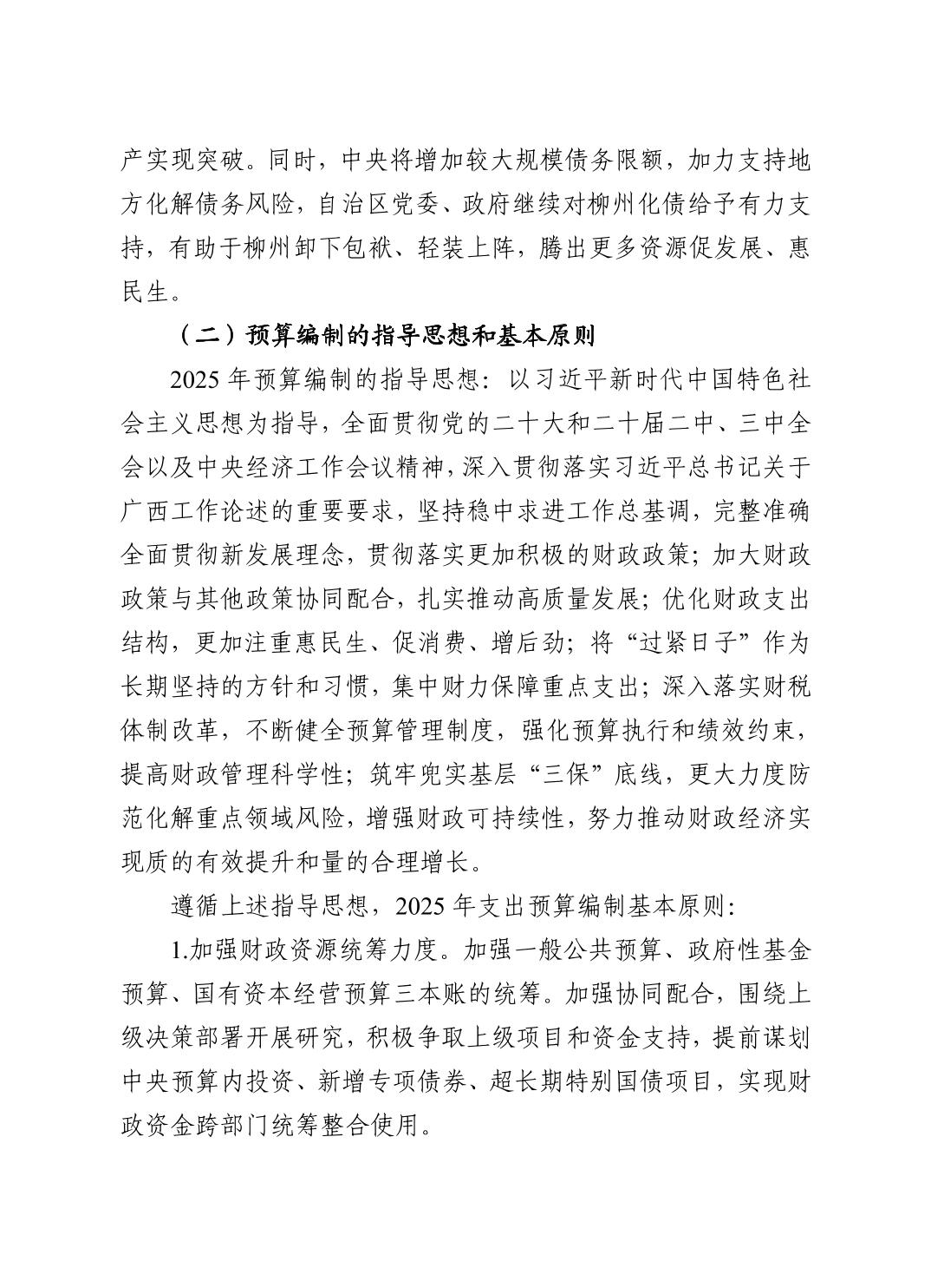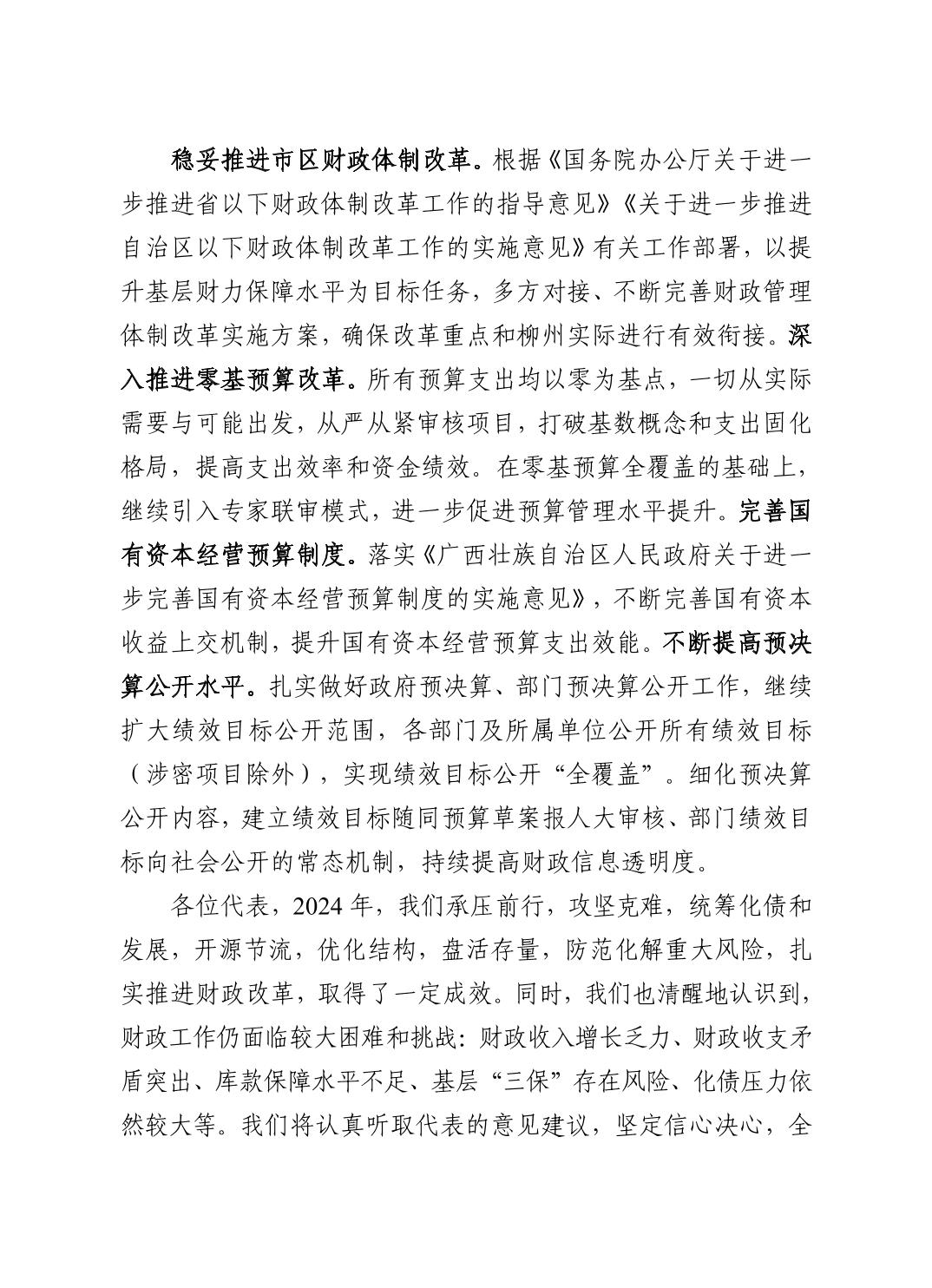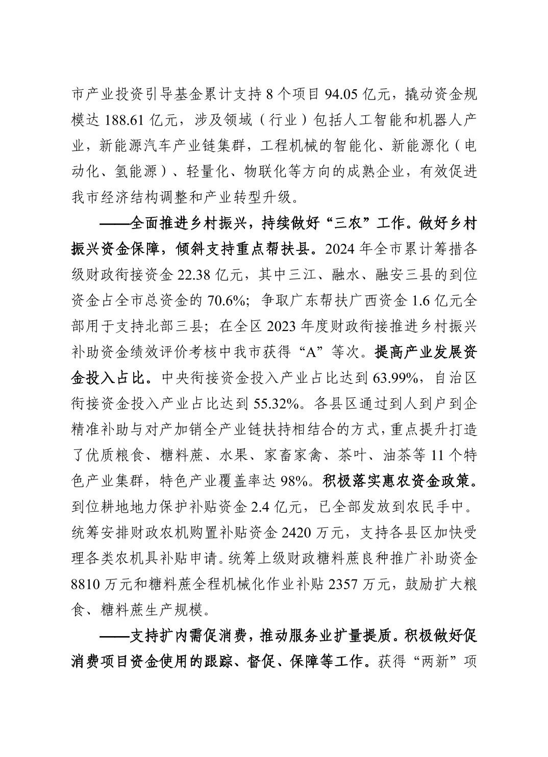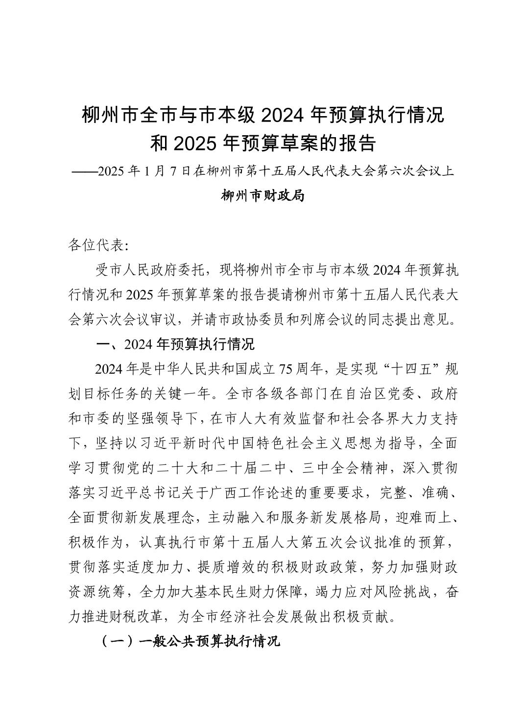 柳州市全市与市本级2024年预算执行情况和2025年预算草案的报告