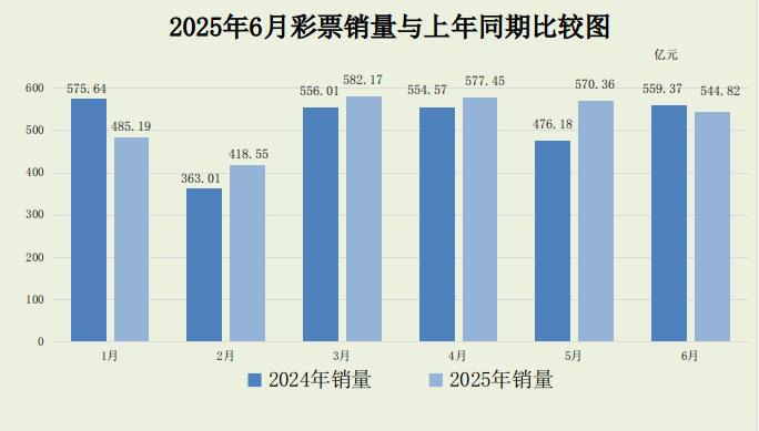 1-6月累计,全国共销售彩票3178.54亿元,同比增加93.76亿元,增长3.0%。其中,福利彩票机构销售1071.10亿元,同比增加20.90亿元,增长2.0%;体育彩票机构销售2107.44亿元,同比增加72.86亿元,增长3.6%。