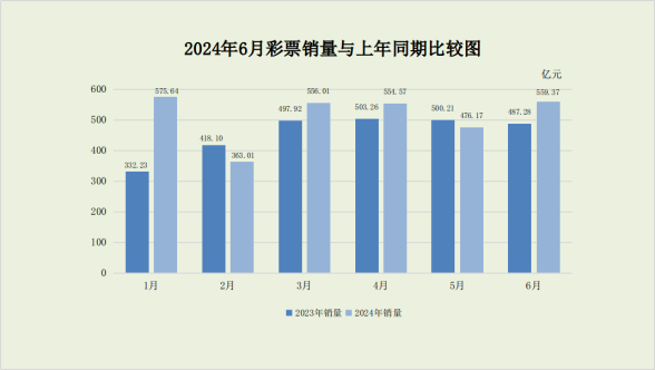 1-6月累计,全国共销售彩票3084.78亿元,同比增加345.79亿元,增长12.6%。其中,福利彩票机构销售1050.20亿元,同比增加152.03亿元,增长16.9%;体育彩票机构销售2034.58亿元,同比增加193.76亿元,增长10.5%。