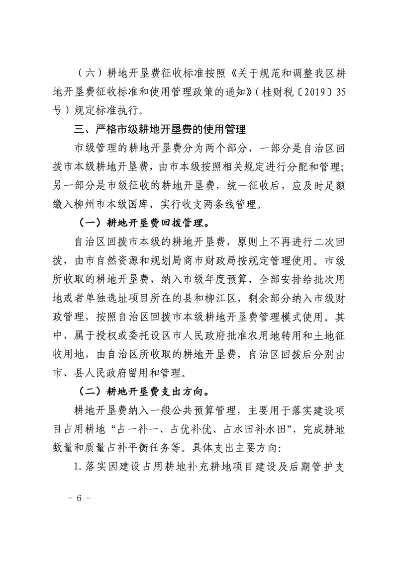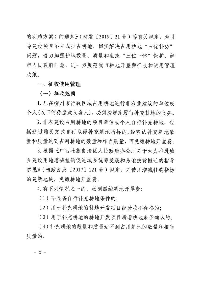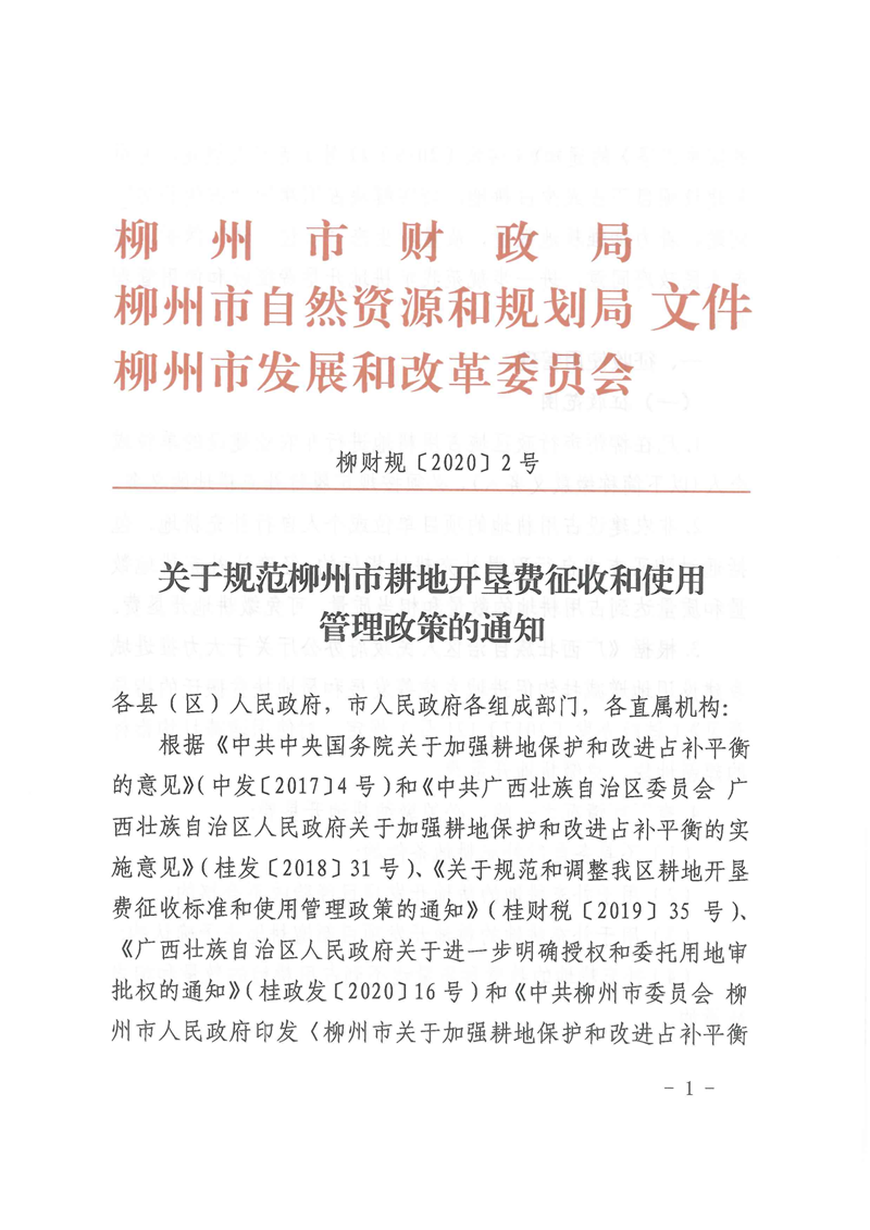 柳财规〔2020〕2号关于规范柳州市耕地开垦费征收和使用管理政策的通知