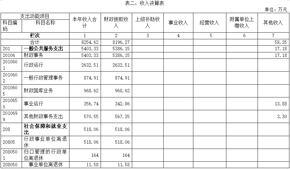 表二:收入决算表