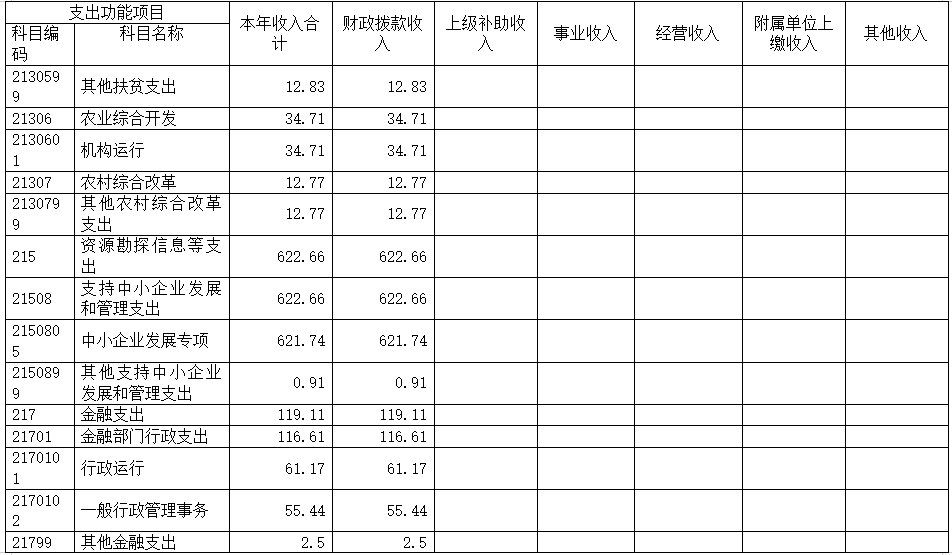 14.农林水支出(类)扶贫(款)其他扶贫支出(项),支出功能分类科目编码2130599。年初预算为0,支出决算为12.83万元。决算数大于预算数的原因是:年初未安排财政拨款预算,年中调整增加其他扶贫支出财政拨款预算。