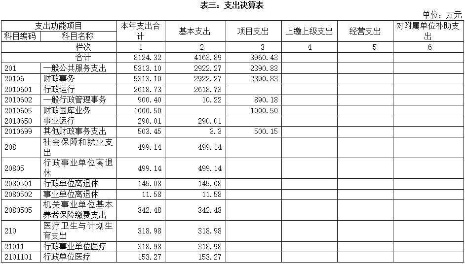 表三:支出决算表
