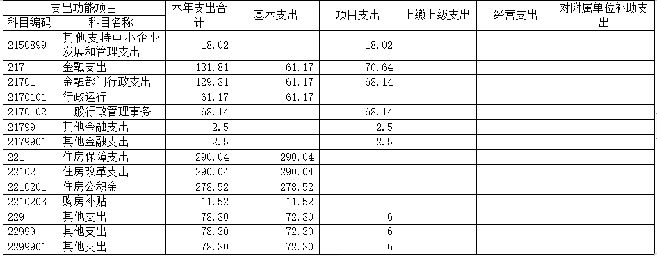 金融(类)支出131.81万元,占1.64%;住房保障(类)支出290.04万元,占3.6%;其他(类)支出6万元,占0.07%。