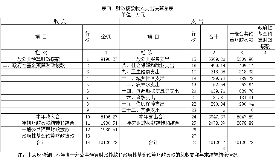 表四:财政拨款收入支出决算总表