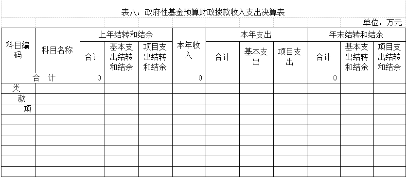 表八:政府性基金预算财政拨款收入支出决算表
