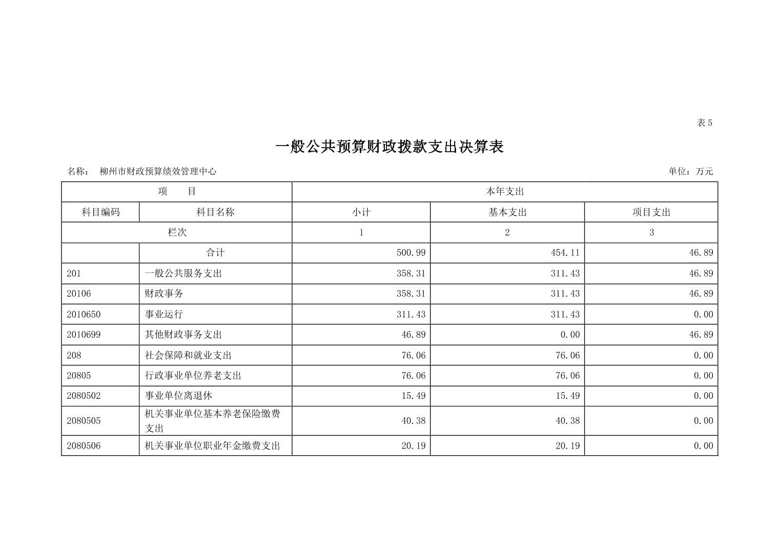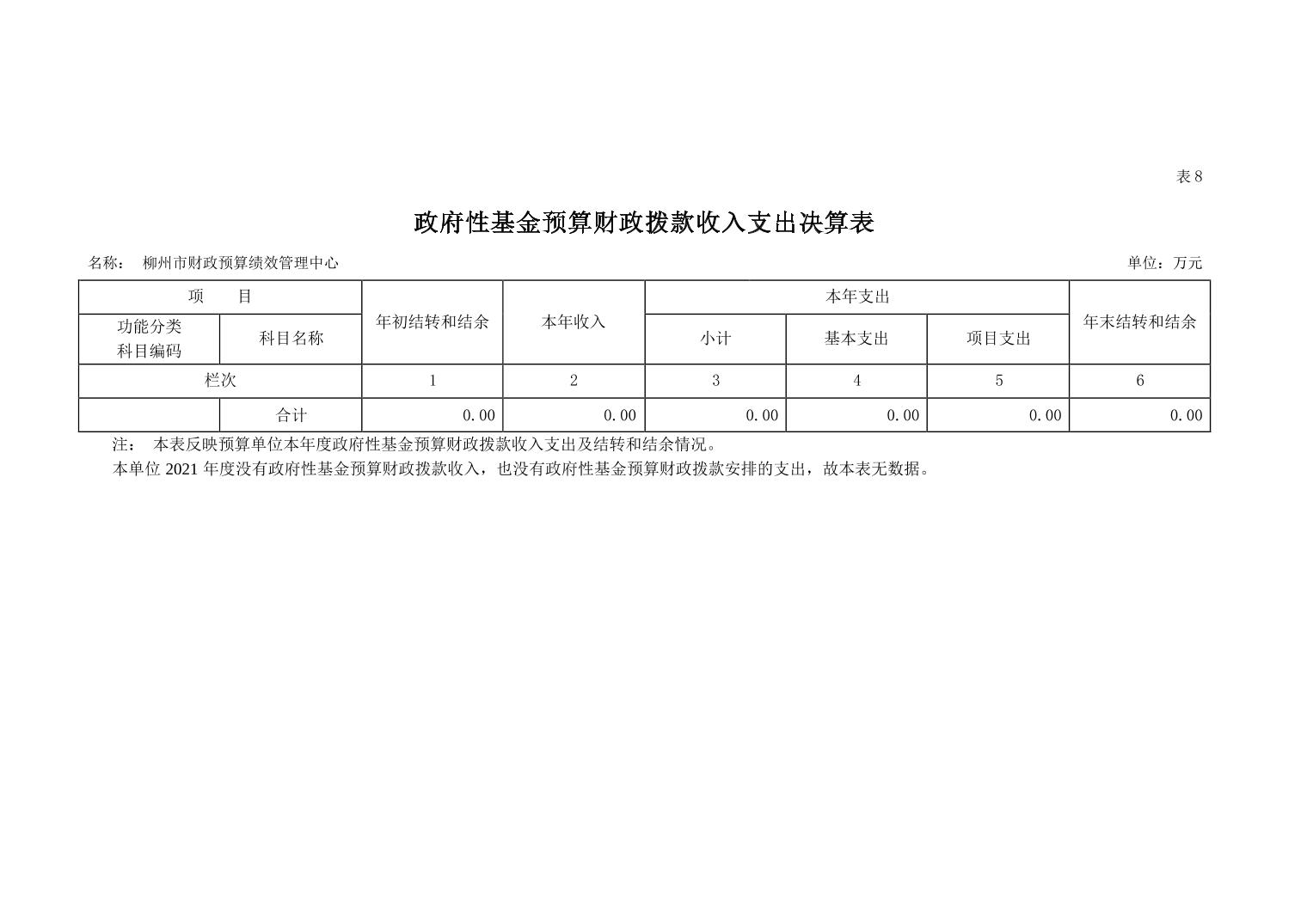 柳州市财政预算绩效管理中心2021年度部门决算