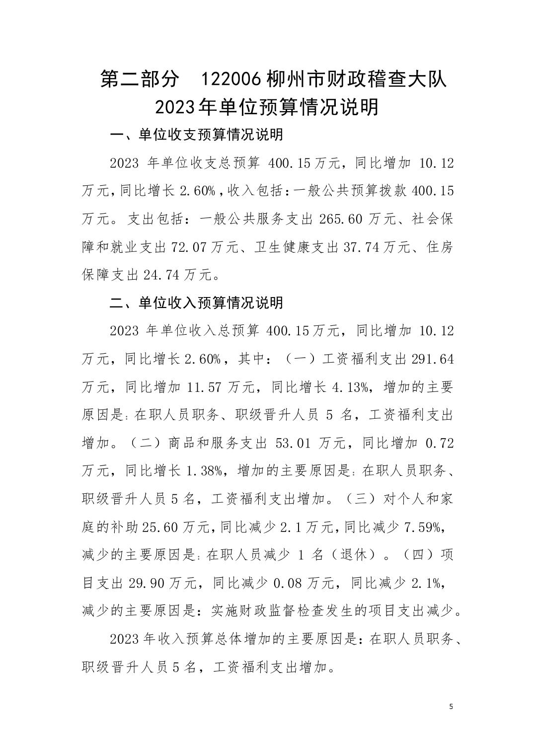 122006柳州市财政稽查大队2023年单位预算公开说明