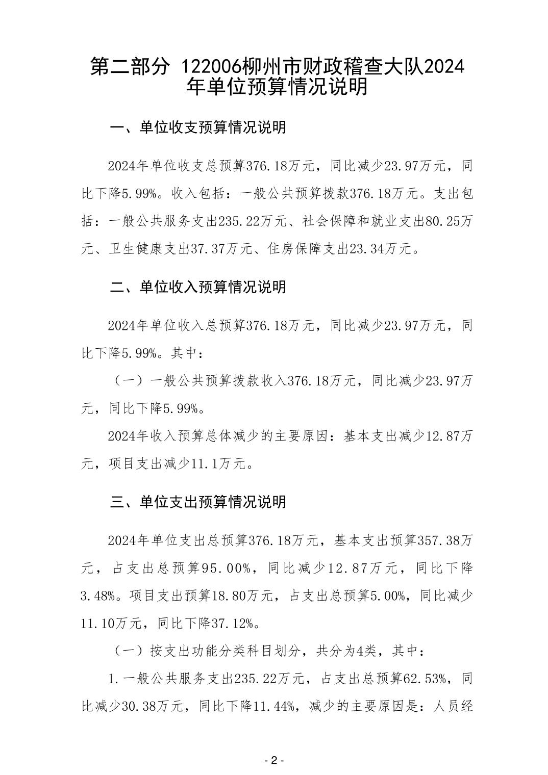122006柳州市财政稽查大队2024年单位预算公开说明 - 2024 - 广西永利博彩网站