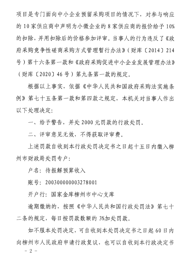 《行政处罚决定书》(柳财处〔2022〕8号)