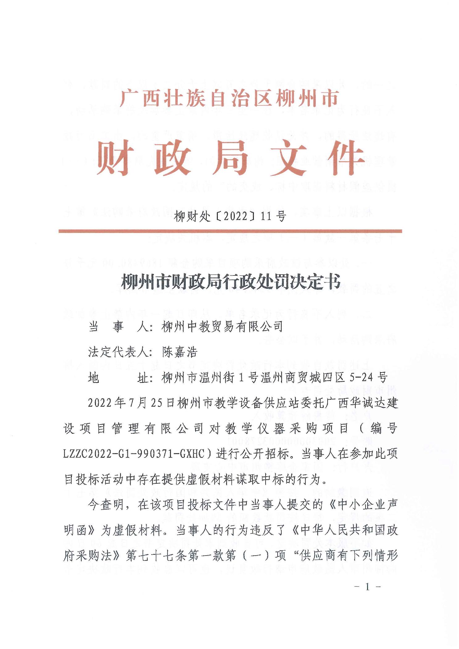 永利博彩行政处罚决定书(柳财处〔2022〕11号)