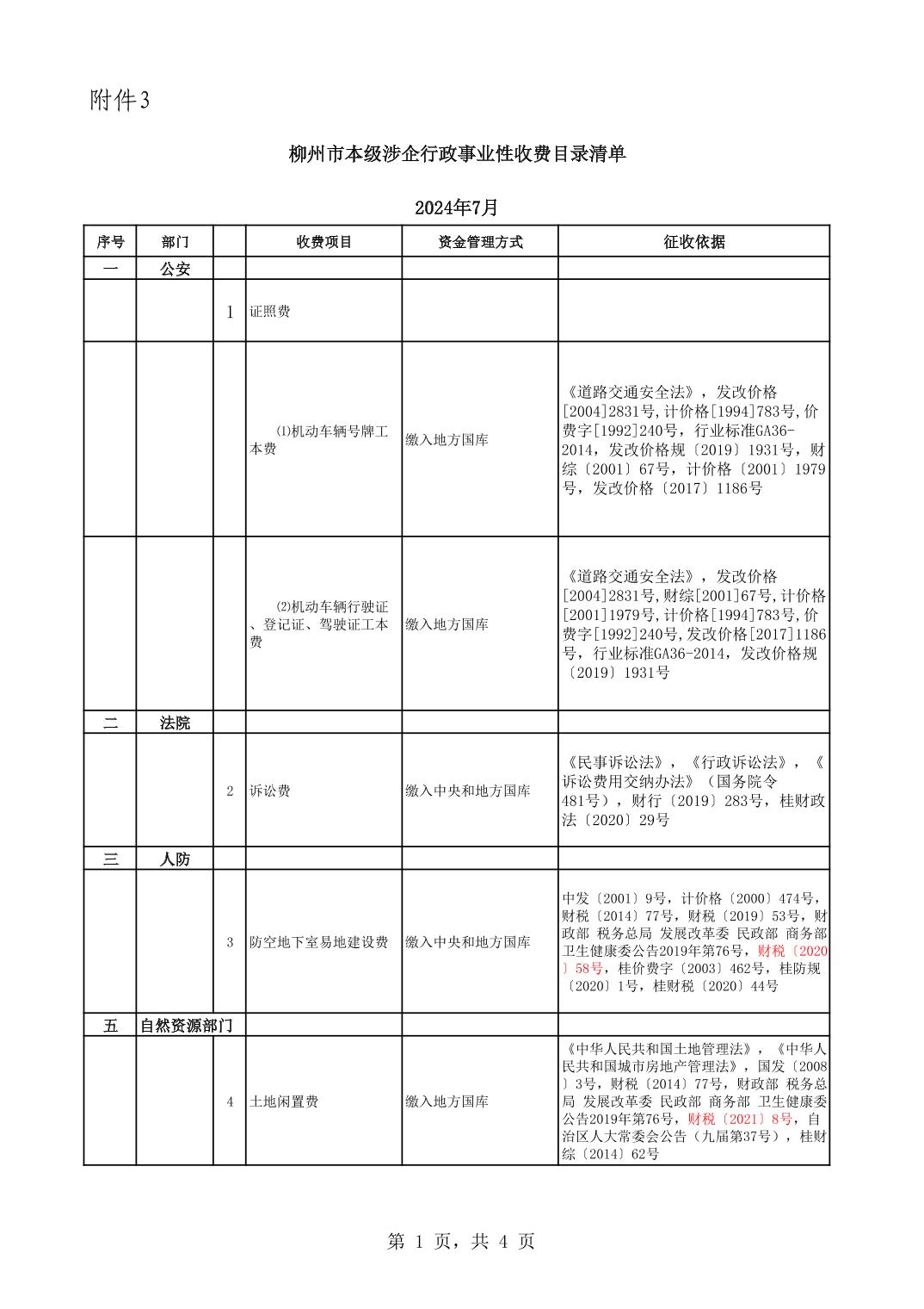 2024年柳州市本级涉企行政事业性收费目录清单 - 行政事业收费 - 广西永利博彩网站