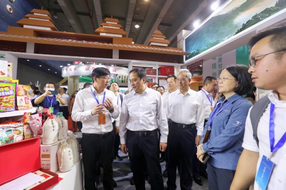 图一:自治区人民政府副主席许显辉到粤桂协作消费对接活动暨第23届广西名特优农产品(广州)交易会柳州展馆听取柳州市农产品有关情况